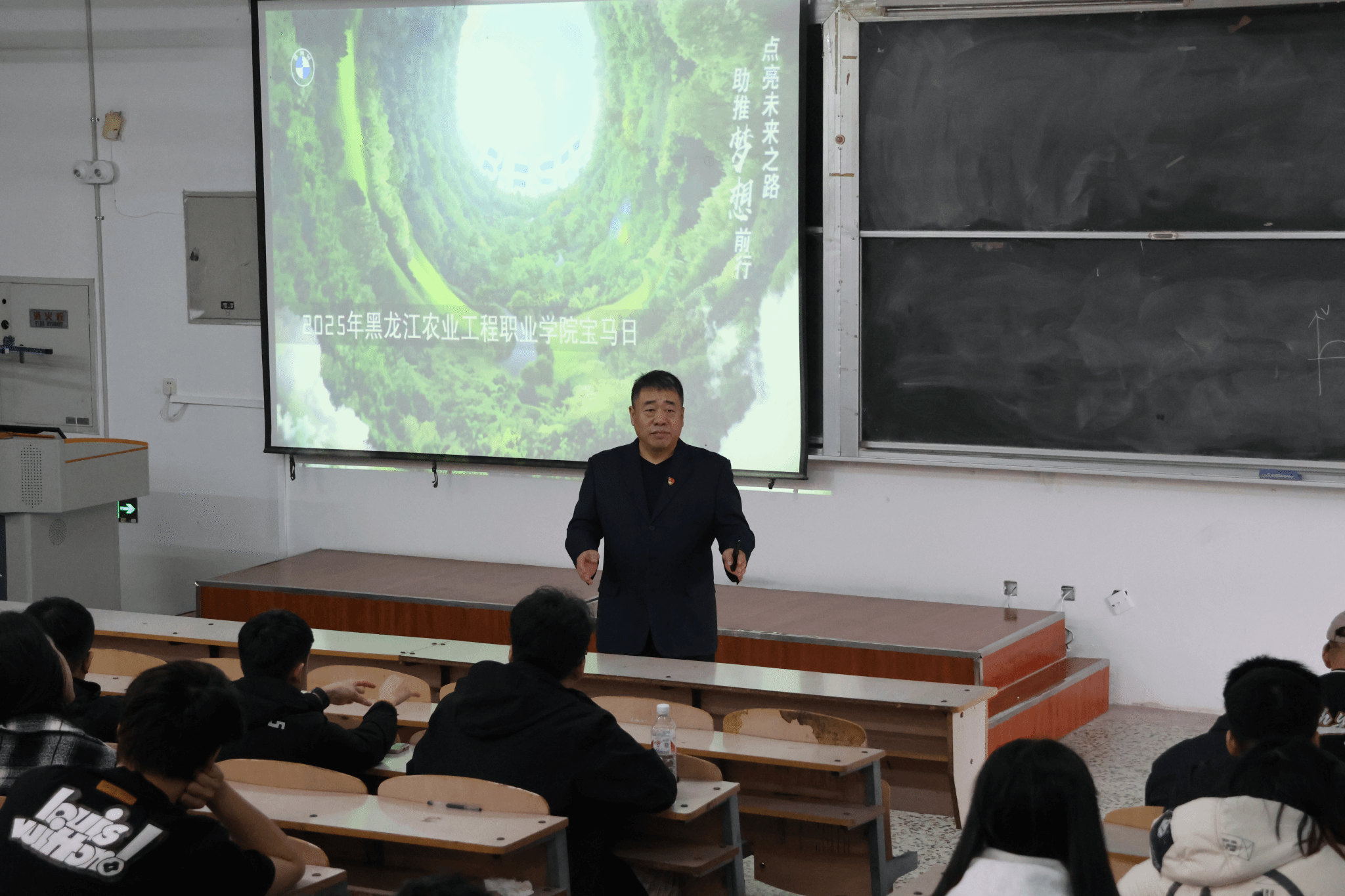 为深入推进产教融合,增进学生对宝马BEST项目的了解,全面提升校企合作人才培养质量,2025年4月2日下午,汽车工程学院在励学楼阶梯教室成功举办了“宝马集团BEST哈尔滨培训基地—2025年宝马品牌日”活动。汽车工程学院教学副院长于翔甫,宝马基地负责人曹乃悦与2023级100余名学生齐聚一堂,共同领略宝马卓越的企业文化,体验宝马“悦”理念。
