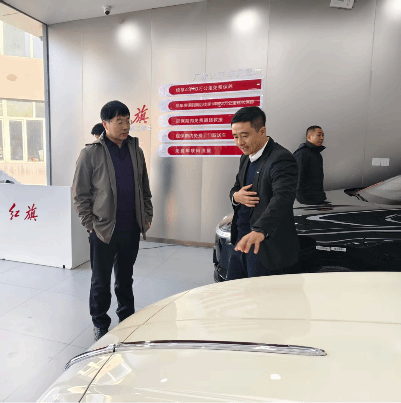 在王海涛总经理的带领下,侯彦明书记一行先后参观了销售展厅、维修车间、二手车评估厅等核心区域,王海涛总经理详细介绍了红旗品牌最新产品矩阵、企业运营模式及发展规划。参观过程中,侯彦明书记重点看望了正在该企业实习的23级和24级中高贯通学生,询问他们的实习收获及生活状况,鼓励同学们把握实习机会,提升职业素养。