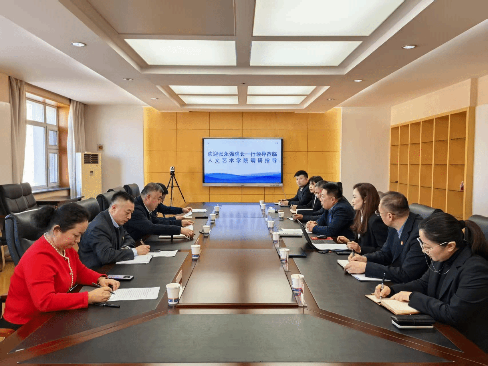 2月21日下午,院长张永强,副院长田培育、王新年及相关部门负责人一行5人来到人文艺术分院进行调研,人文艺术分院领导班子参加座谈会。会议由党总支书记田松主持。
