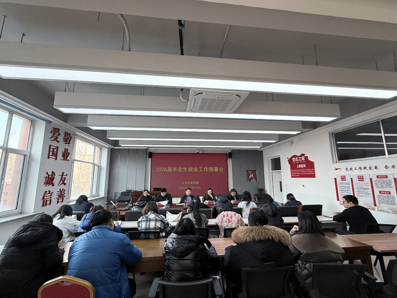 为深入贯彻落实党中央、国务院关于“稳就业”“保民生”的重大决策部署,全面启动学院2026届毕业生就业工作,12月24日,人文艺术学院召开2026届毕业生就业工作部署会议。学院党政领导班子成员、全体专业课教师及辅导员参加会议。会议由学院副院长宋智鹏主持。