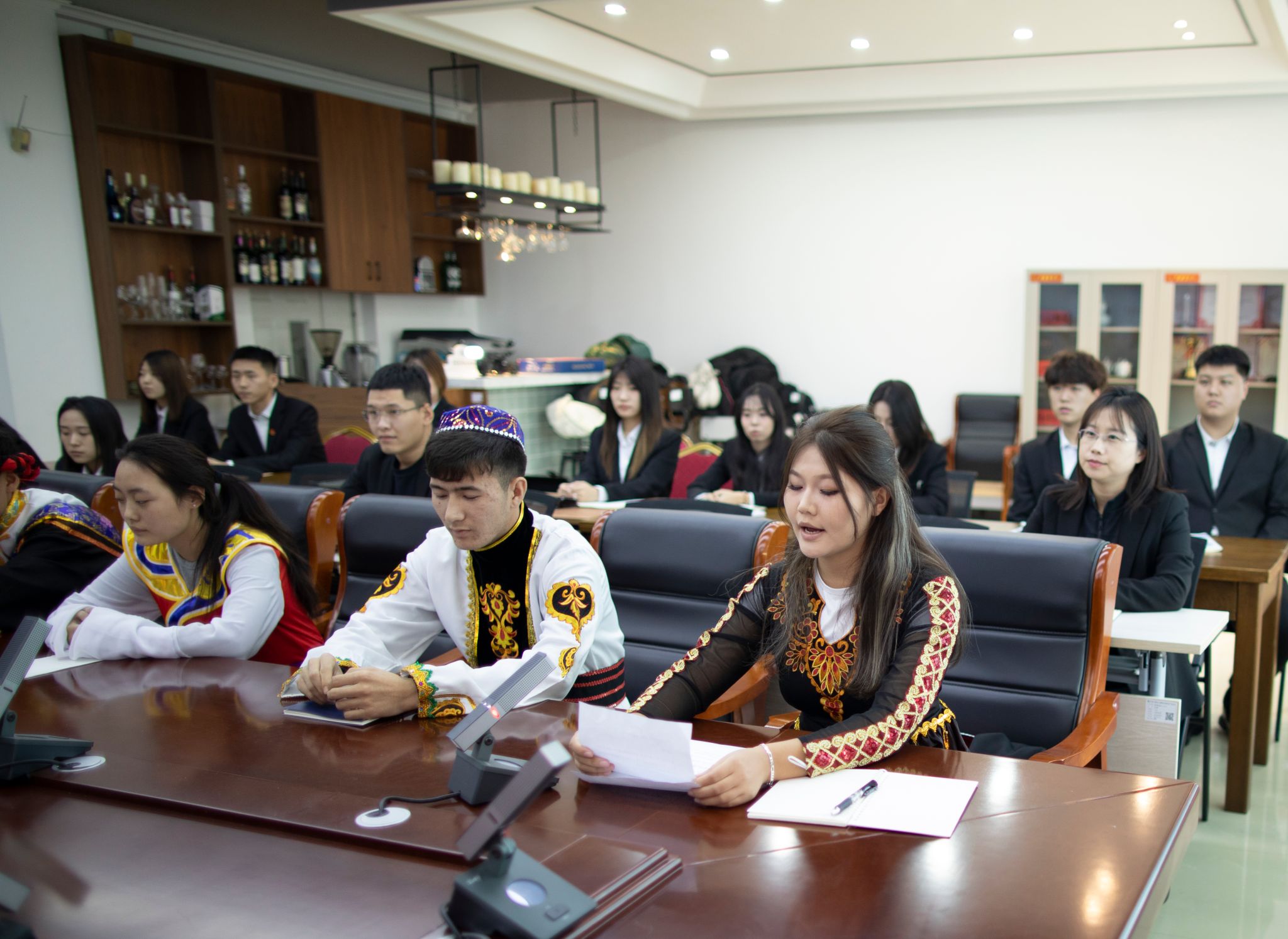 仪式上,副院长宋智鹏宣读了新一期的融情结对名单。来自藏族、维吾尔族、哈萨克族等8名同学与学院领导、老师正式结成帮扶对子。在全场师生的见证下,少数民族学生代表为结对老师敬献了象征纯洁与尊敬的哈达,并合影留念。学生代表阿依布塔·吐鲁汗别克同学在发言中表达了对学院关怀的感激与对未来成长的期待。