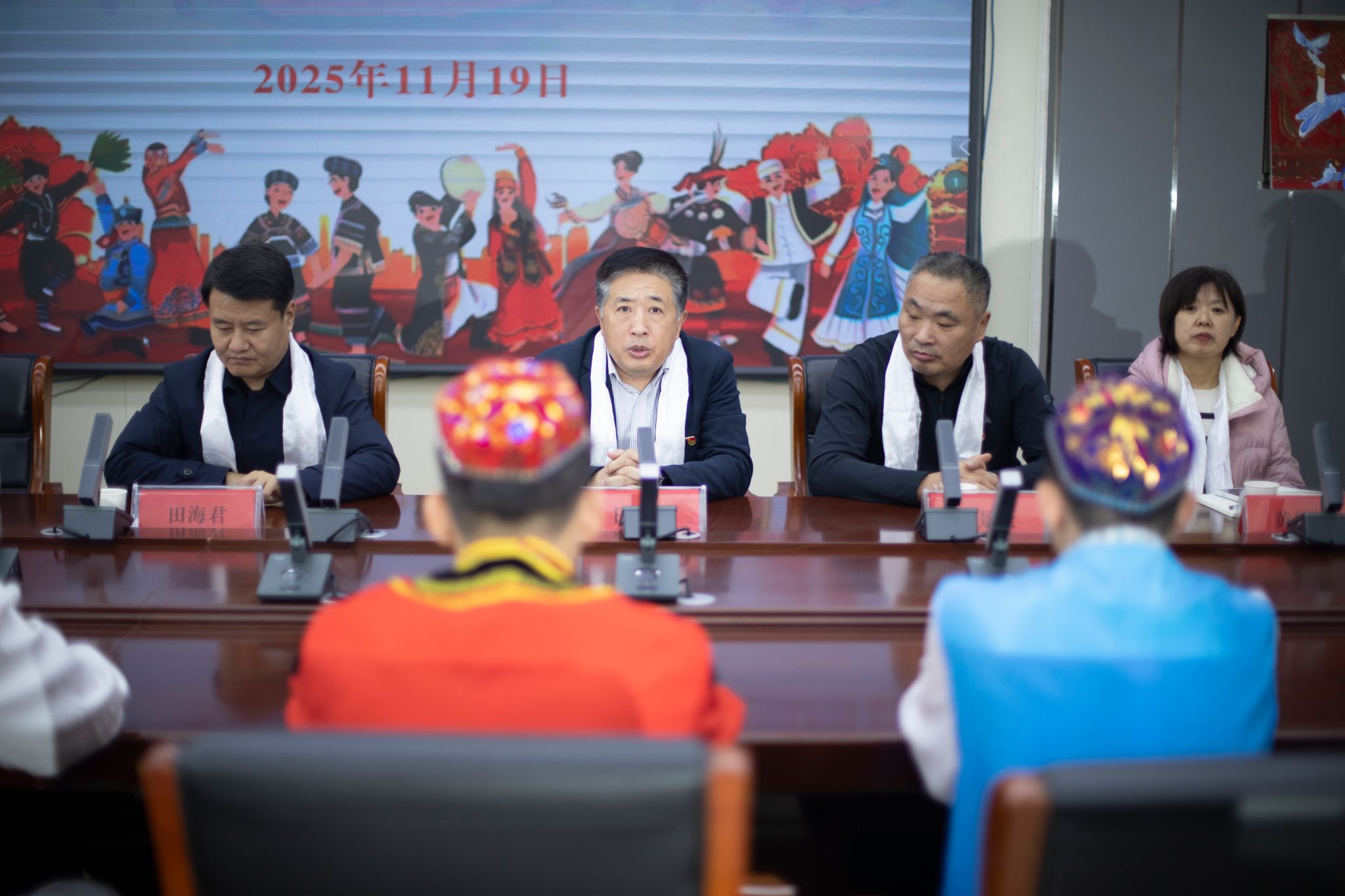 为深入贯彻落实党的二十大精神,铸牢中华民族共同体意识,11月19日,人文艺术学院举行新一期“三进两联一交友·石榴花开美农工”融情结对仪式。校党委委员、纪委书记田海君,人文艺术学院党总支书记田松、院长许阳,学院领导班子成员、全体辅导员及学生代表出席了本次活动。仪式在温馨而热烈的氛围中拉开帷幕。