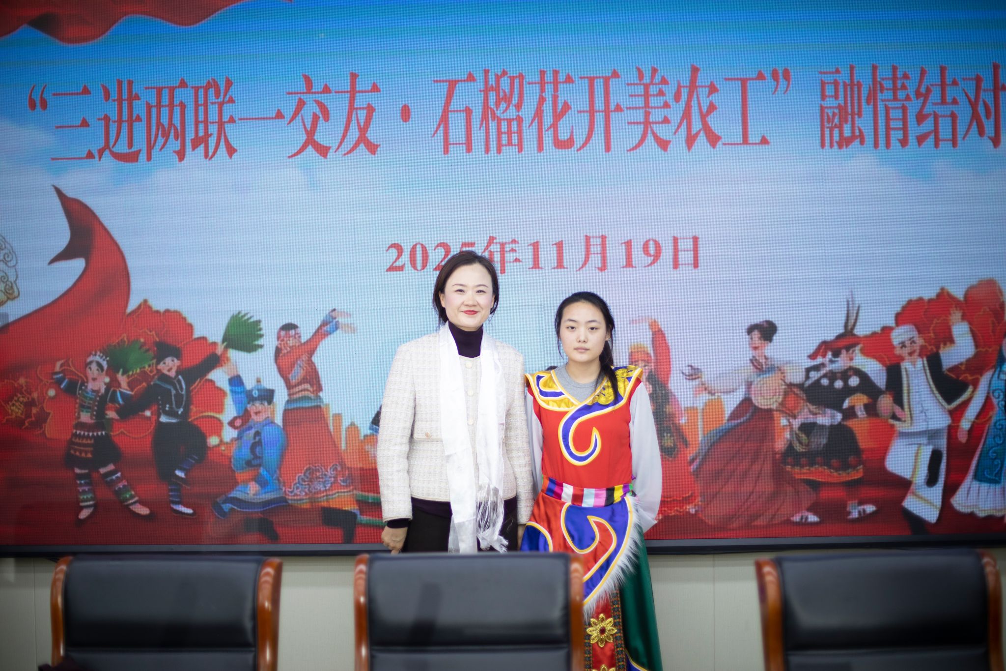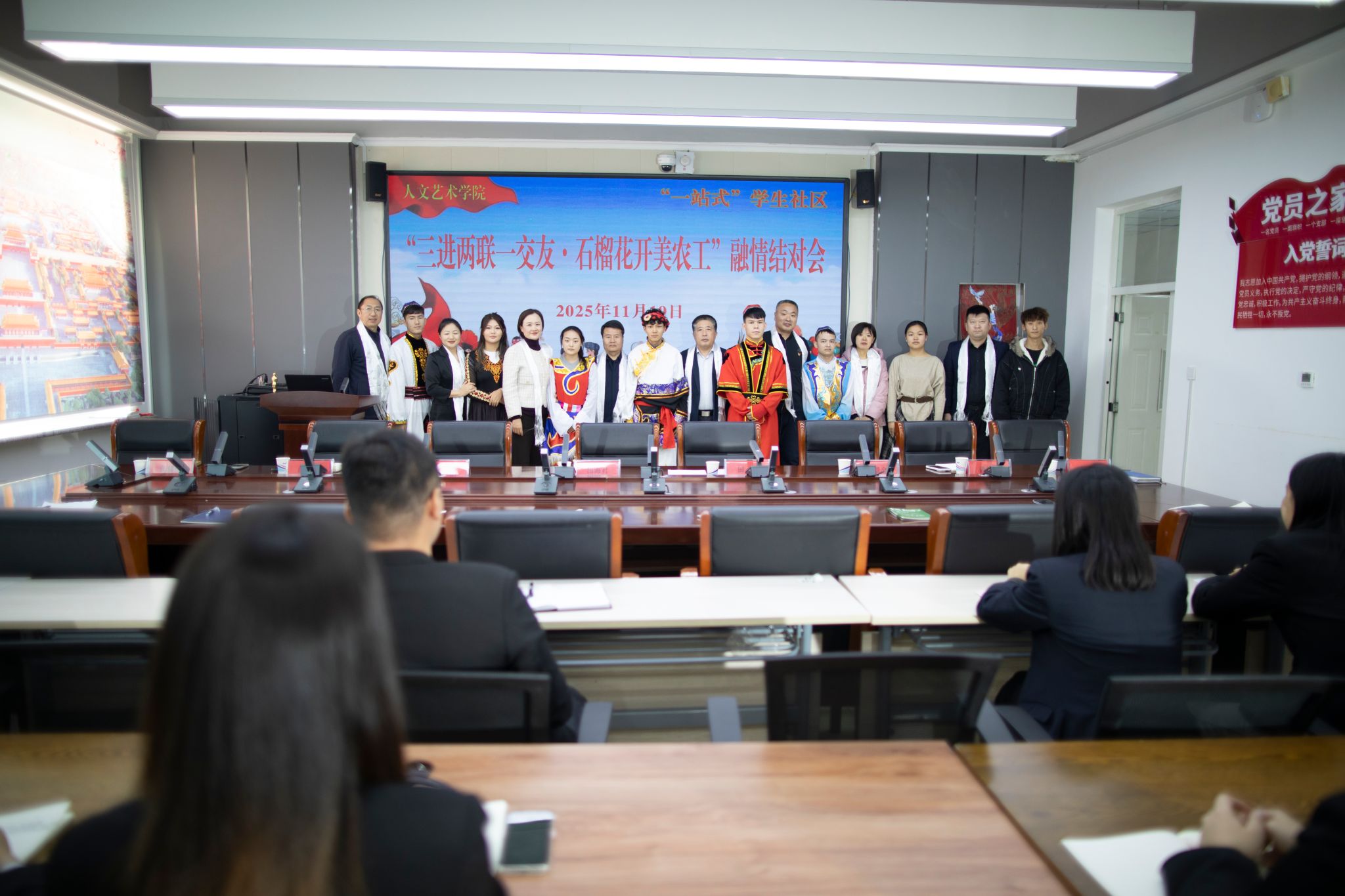 本次融情结对仪式不仅是一次爱心的传递,更是一次深刻的民族团结实践。它如同绽放的石榴花,预示着未来累累硕果的希望。相信在“三进两联一交友·石榴花开美农工”活动的持续推动下,人文艺术学院的师生们定能在交往、交流、交融中,共同书写“中华民族一家亲,同心共筑中国梦”的青春华章!