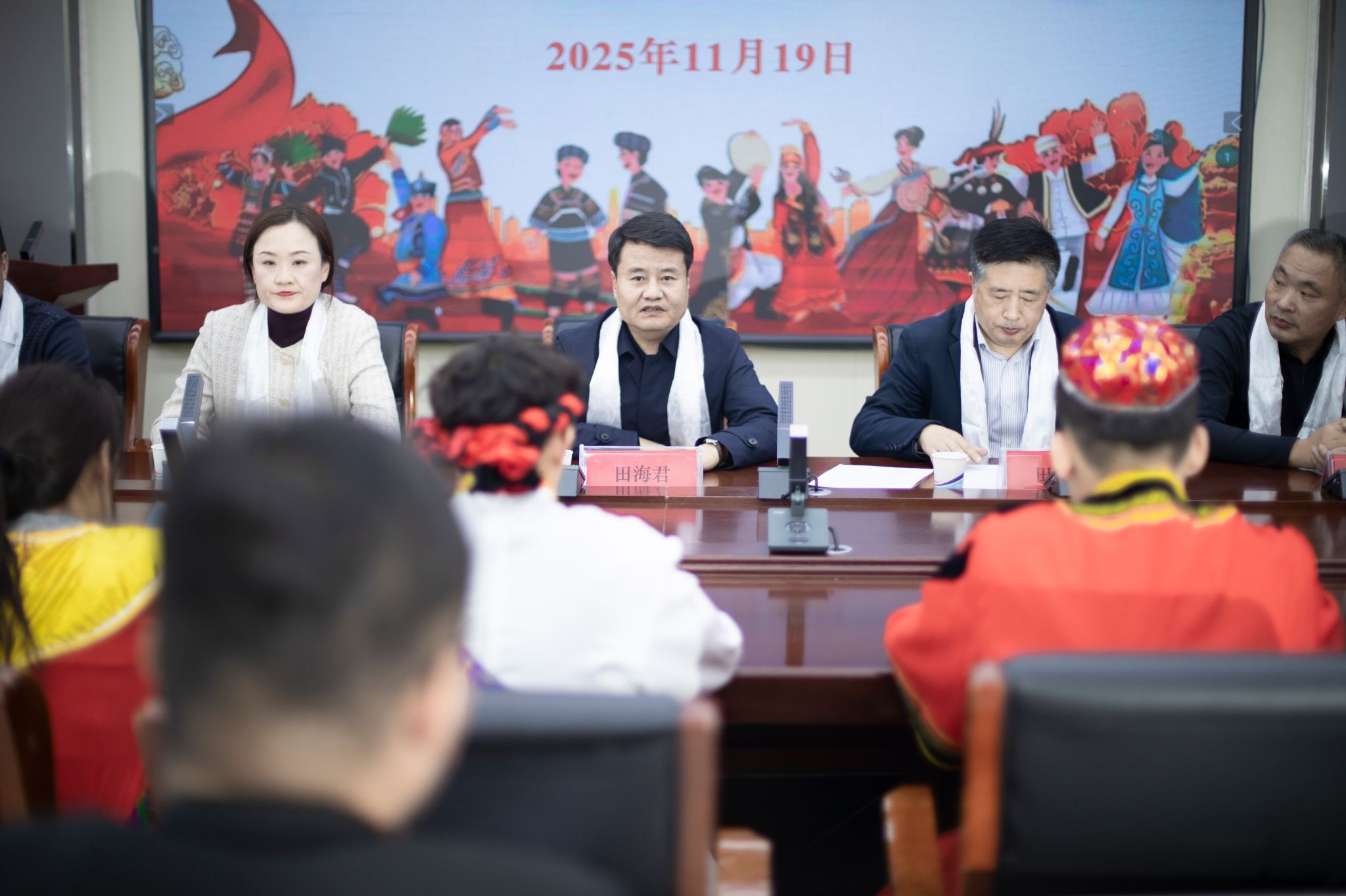 学校党委委员、纪委书记田海君同志代表学校党委对活动的成功启动表示热烈祝贺。他从政治高度和战略深度,深刻阐释了此项工作的重大意义。田书记指出,要系统推进,构建“三全育人”的工作合力与长效机制;要聚焦内涵,突出育人工作的“情感温度”与“文化厚度”。他鼓励人文艺术学院勇于探索,为全校的民族团结进步工作树立标杆、作出示范,并寄语全体同学要像石榴籽一样紧紧抱在一起,将个人成长融入国家发展,努力成为担当民族复兴大任的时代新人。
