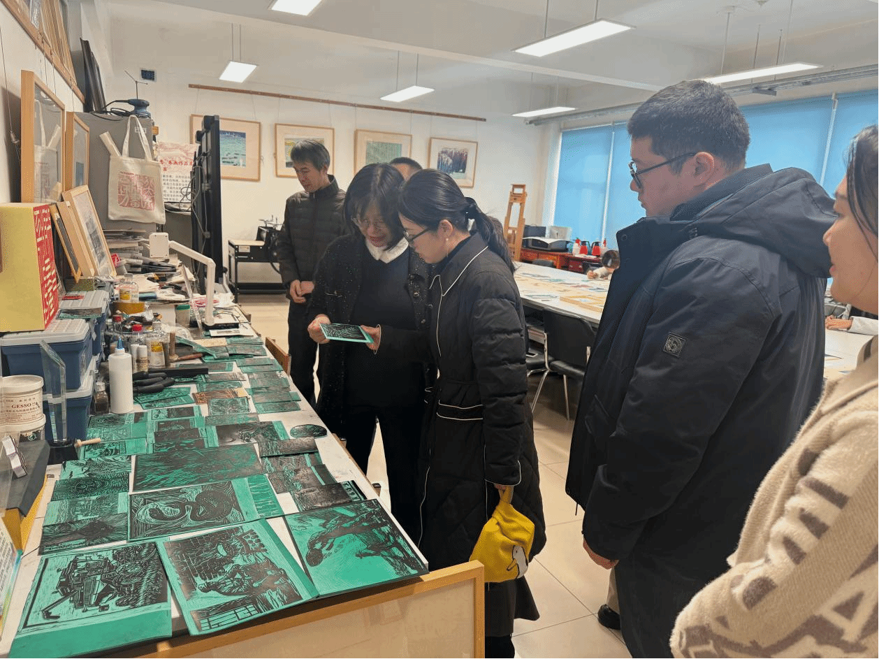 本次学习交流以实地参观特色艺术工作室为主线,在师范教育学院张红梅书记的热情陪同下,教研室教师们先后走访了书法工作室、手工工作室、浮雕工作室及版画工作室。各工作室完备的教学设施、鲜明的特色定位以及浓郁的艺术创作氛围给教师们留下了深刻印象。从创意的剪纸作品,到充满探索精神的综合材料创作,再到融合地域文化特色的版画,一系列构思巧妙、技法多元的学生作品,生动展现了黑农垦师范教育学院在通识艺术教育领域注重实践、鼓励创新的丰硕成果。