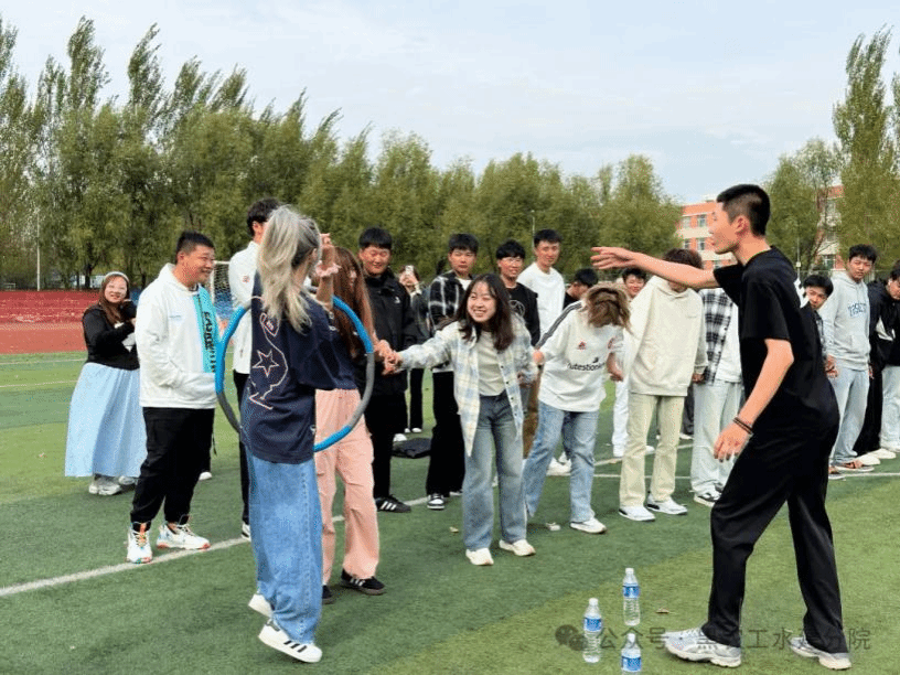 2024年9月19日下午水利与建筑工程学院全体24级新生和辅导员在体育场组织了一场振奋人心的素质拓展训练活动。本次活动宗旨是培养新生们的团队合作精神、沟通能力和创新思维,增强团队凝聚力,更好的提升新生们的综合素质。