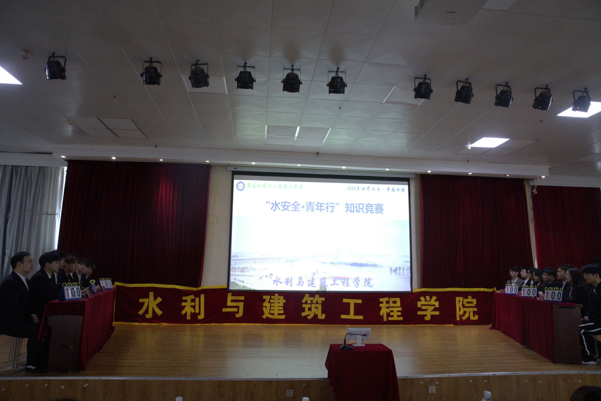 2025年3月30日,正值第三十三届世界水日和第三十八届中国水周活动之际,水利与建筑工程学院在教学楼627报告厅开展了水安全·青年行主题知识竞赛此次活动学院世界水日”、中国水周系列宣传教育活动的重要组成部分。本次比赛经过层层选拔,来自水利水电工程技术23-1班等六支学生代表队同台竞技,通过四个环节的激烈角逐,全面检验水利学子的专业素养,生动展现新时代水利青年的使命担当。