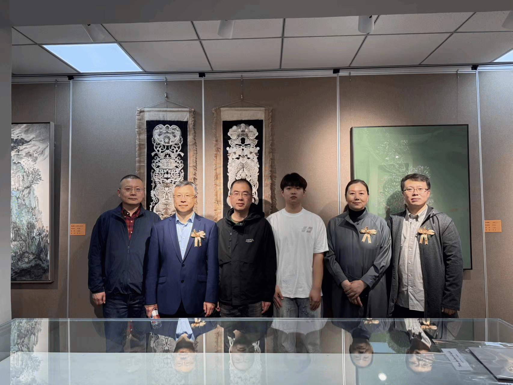与哈尔滨市文联党组书记孙建伟,省美协主席团成员等领导在作品前合影