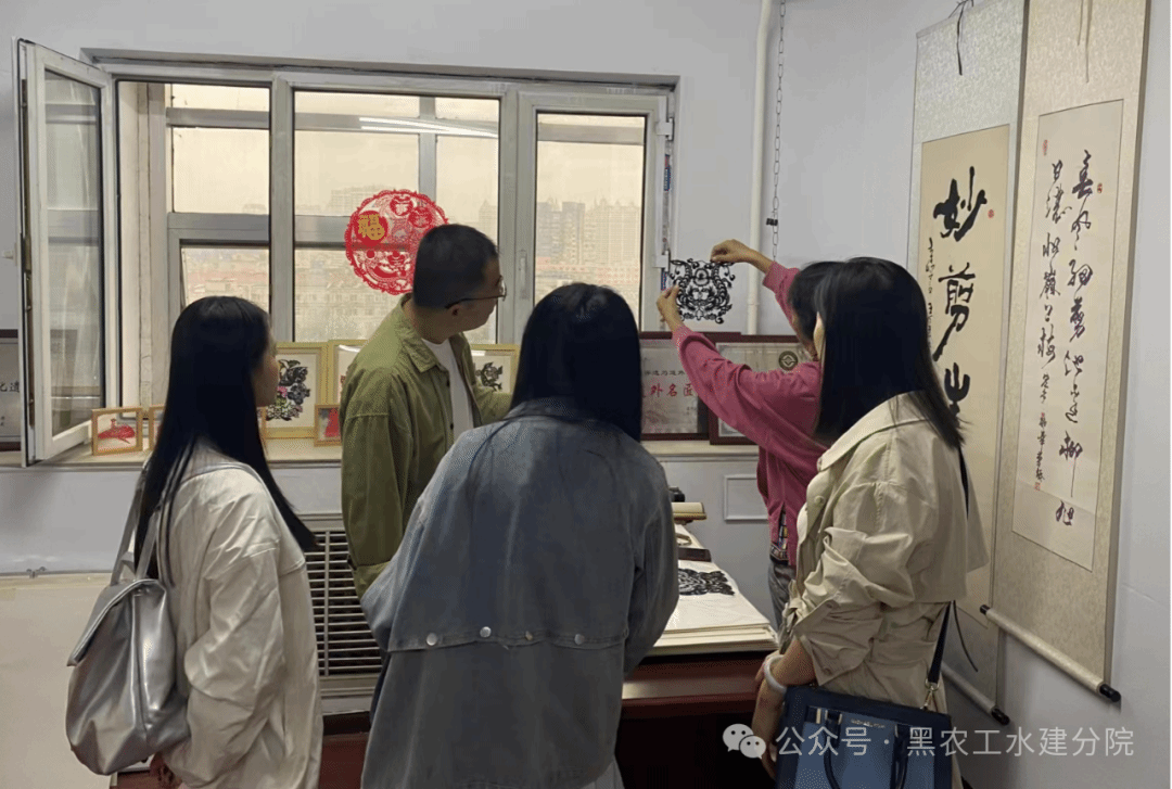 2024 年9月4日下午,为加强中华优秀传统文化的认识与传承、推动岗课赛证深度融合,《室内陈设设计》课程教学团队教师姜宏宇、怀正阳、白芳带领学生走进黑龙江省非物质文化遗产代表性传承人施丽华老师的剪纸工作室,开启了一场精彩纷呈的非遗文化探索之旅。