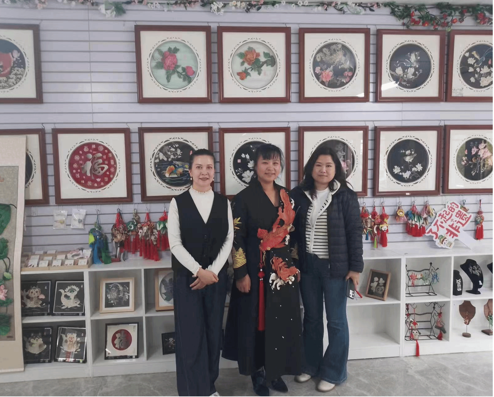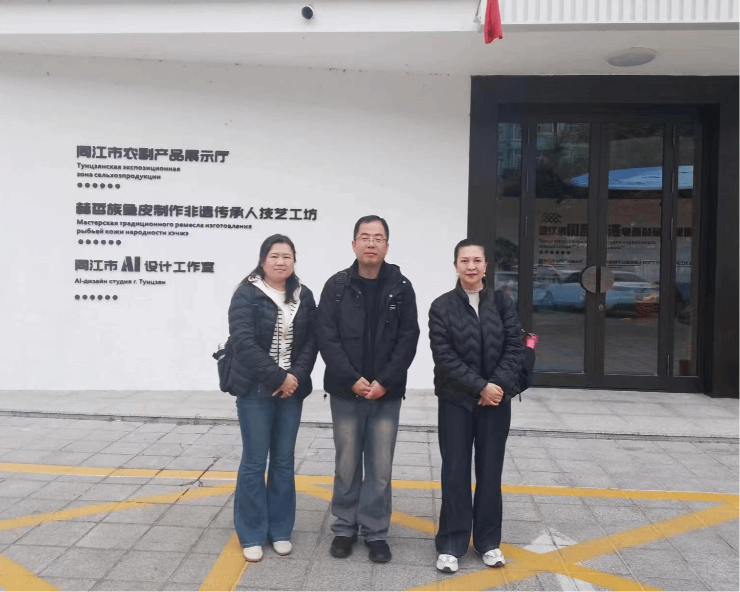 在调研过程中,三位教师分别走访同江市非遗展示馆、赫哲族博物馆、佳木斯黑龙江佳艺鱼皮文化博物馆、方正县文化馆,了解赫哲族鱼皮技艺、传统民居布局、寒地建筑设计特点,考察非遗符号在现代室内设计中的转化应用。同时与赫哲族鱼皮制作技艺传承人杨双艳、省非遗剪纸传承人陈红霞,探讨黑土非遗如何融入室内陈设、公共空间传扬民族文化等相关问题,并采集地域设计素材,为课程本土化积累案例。