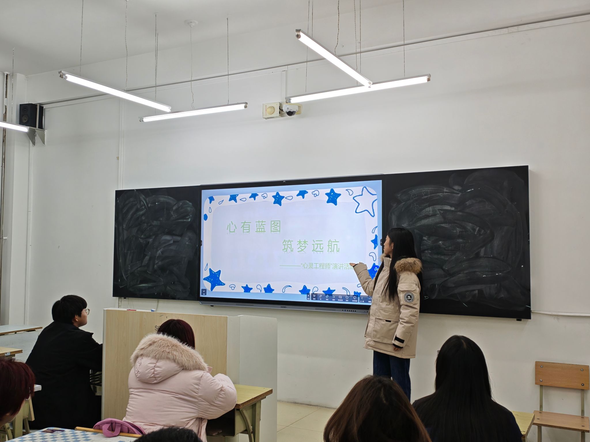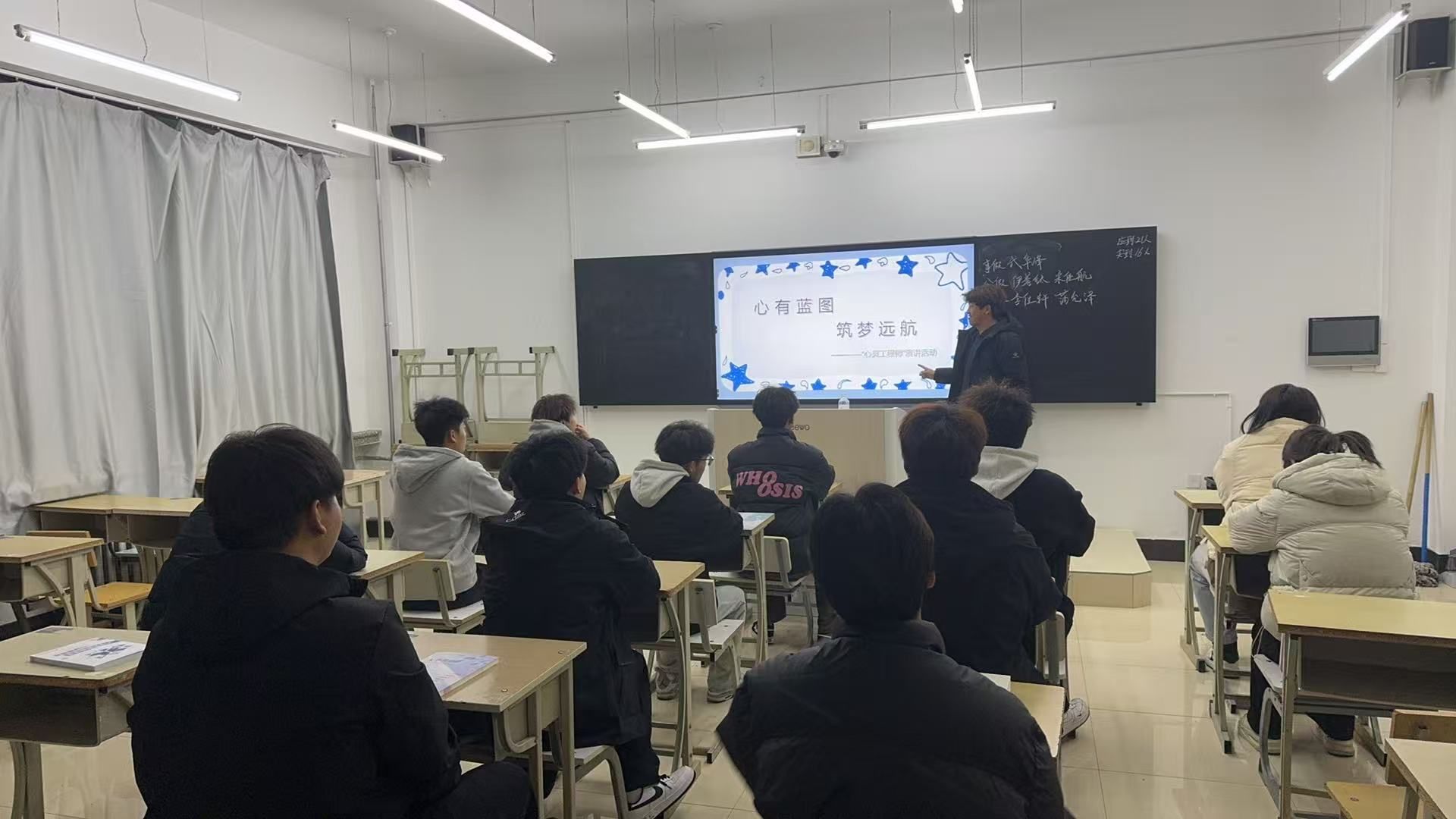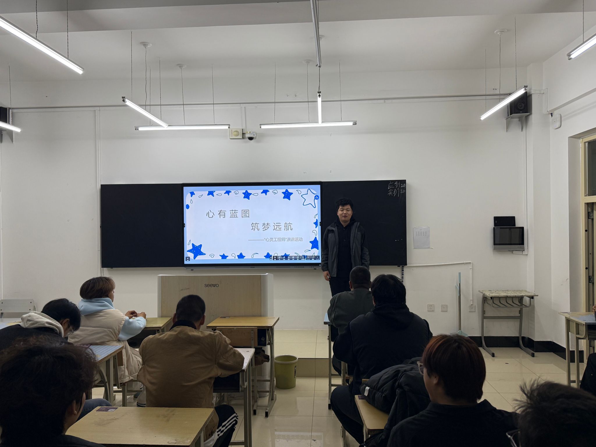 演讲内容丰富多元——从初入大学的迷茫与适应,到备考与竞赛中的坚持与突破;从实践中的安全意识与团队协作,到在失败中汲取力量、重燃斗志。每一段故事都真实而动人,如同点亮的一盏盏心灯,温暖了班级的每一位同学。