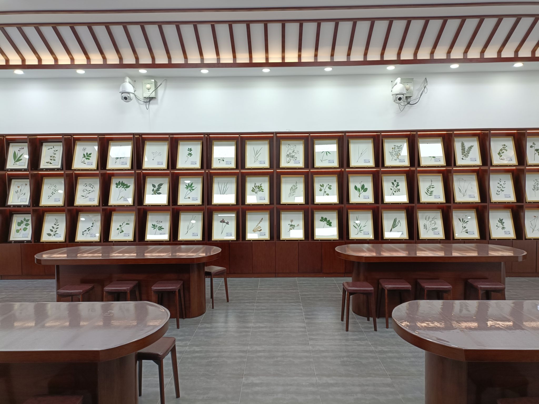 中药标本馆占地面积200平方米,以“传承本草文化、服务教学实践”为宗旨,集教学实训、科普展示、社会服务于一体。馆内陈列腊叶标本、药材浸制标本、矿物包埋标本等八大类近千种实物资源,系统展示常用中药材的形态特征、道地产区及药用价值,配套图文展板详解药材采收加工要点,为《药用植物学》《中医药学基础》等课程提供直观教学场景,助力学生构建从“原植物”到“中药饮片”的完整认知体系。