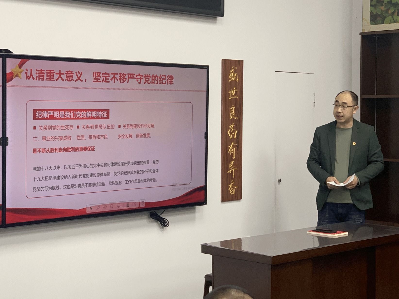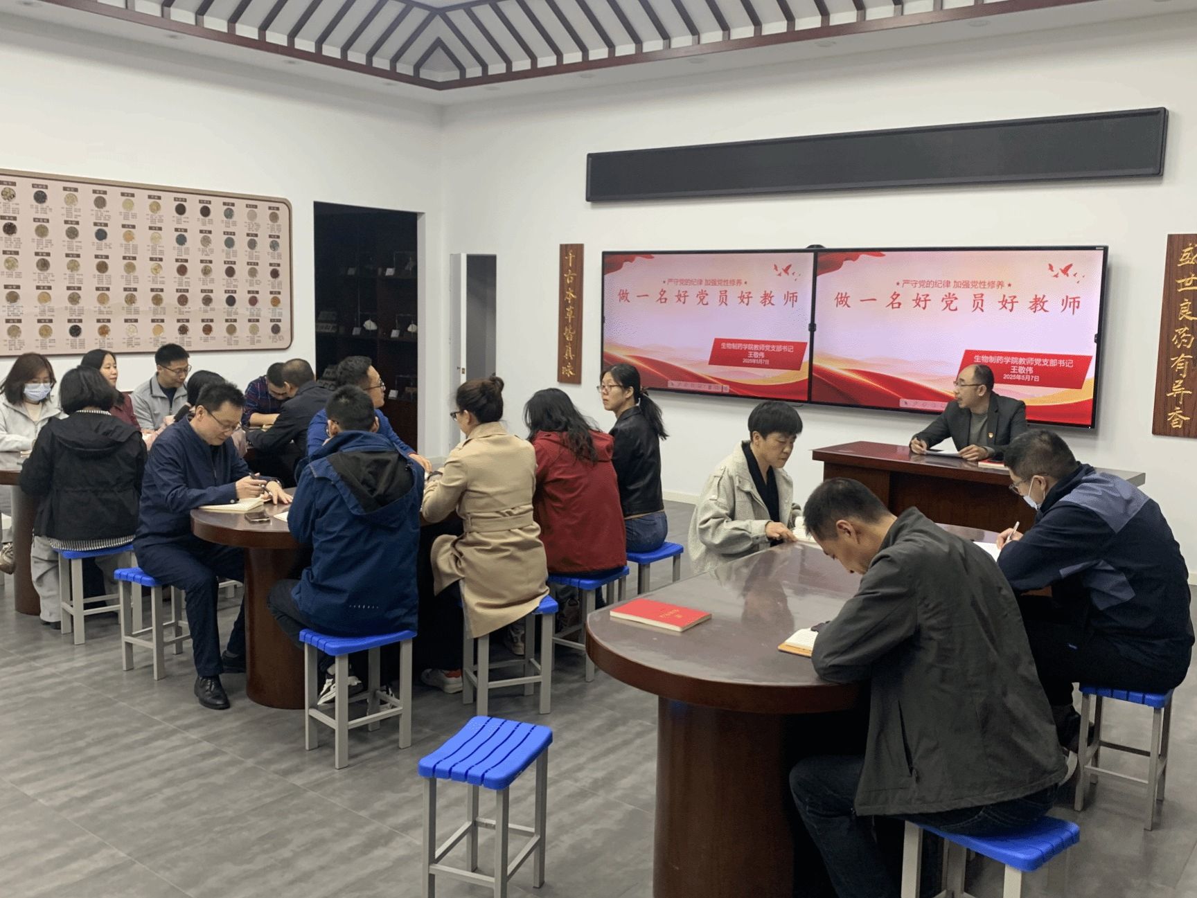 2025年5月7日,生物制药学院教师党支部召开专题党课学习会,深入学习贯彻中央八项规定精神。本次党课以"严守党的纪律 加强党性修养 做一名好党员好教师"为主题,由学院教师党支部书记王敬伟主讲,全体教师党员参加学习。