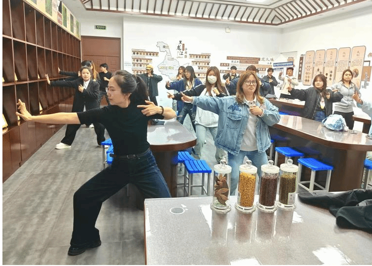 新学员们通过沉浸式实践深度体验中医药文化精髓:在中药称量工具实操中感受传统制药的毫厘严谨,透过显微镜探秘药材微观世界发现植物细胞的精妙构造,更通过中医导引术现场教学亲身领悟"以形导气"的养生智慧,实现从理论认知到具身体验的完整跨越。