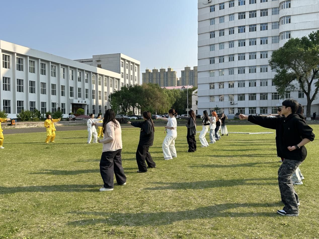 活动最后,宣讲团成员们介绍了养生气功八段锦的动作要领,并带领艺术学院学子们在绿茵场一起操练。在舒缓的音乐中,两校学子共同感受中医养生文化的精髓,为本次活动画上了圆满的句号。