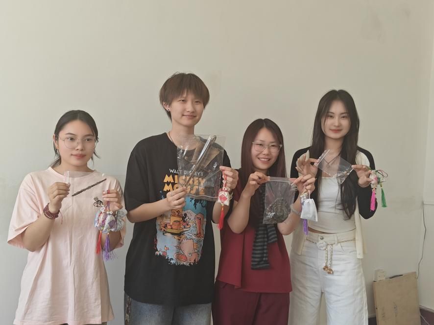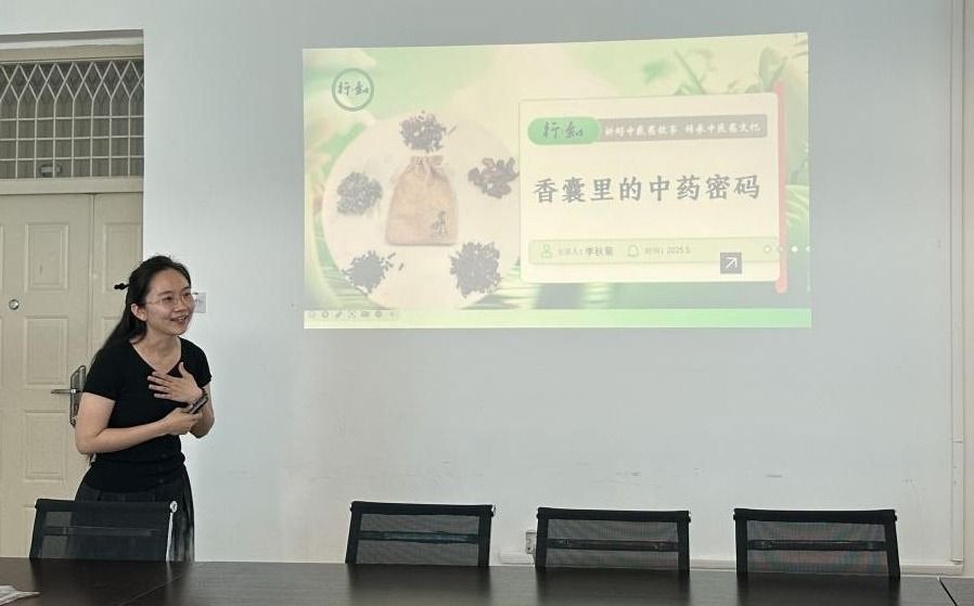 活动以端午节传统文化为引,宣讲团指导教师李秋菊教授生动阐释了中医"五毒"概念及驱五毒方法,展示的实物药材标本引发了同学们浓厚兴趣。随后巧妙过渡到端午佩香囊习俗,重点介绍了艾叶和丁香两味药材:从艾草辟邪传说到药用丁香与观赏品种的区别。同学们惊讶发现,原来校园常见的丁香花并非药用品种,中医药知识就这样自然地融入传统节日文化中。
