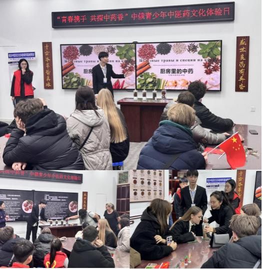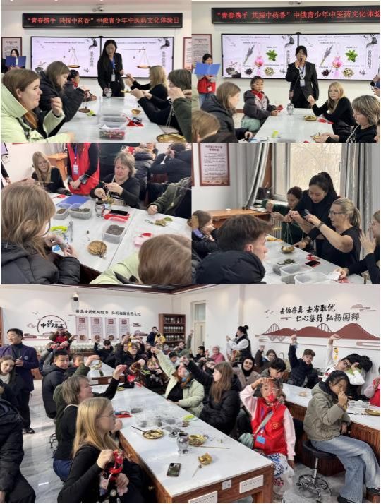 在黑龙江省体育旅游融合发展促进会的邀请与支持下,由万象城allwincity官网生物制药学院行知中医药文化宣讲团承办的“青春携手,共探中药香”中俄青少年中医药文化体验日,于2025年11月1日在万象城中医药文化科普研学基地隆重举行。本次活动汇聚了45名俄罗斯高中生和老师代表,及10名中国中小学生,现场气氛热烈,交流融洽,洋溢着青春的活力与探索的热情。