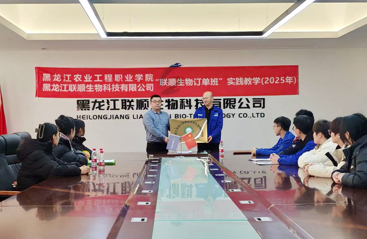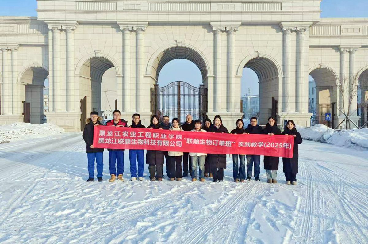 1月23日,我院生物制药分院院长刘中深与教师张在国、张晓璐一行三人前往七台河市,到黑龙江联顺生物科技有限公司看望在岗实践学生、调研企业用人需求,与企业签署了校企联合培养人才合作协议,向企业授予“实习就业基地”牌匾,并与企业领导就推进七台河市域生物医药产教联合体高质量发展进行深入交流。