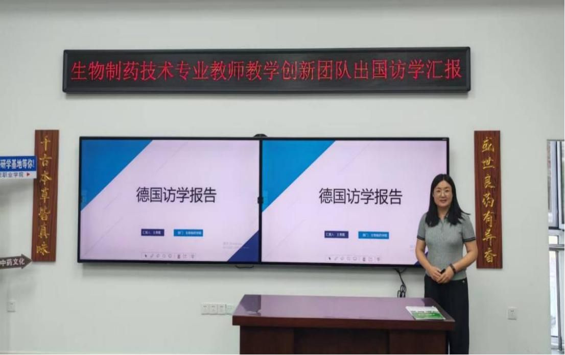 会上,她重点介绍了德国职业教育体系、双元制运行机制和德国药剂师专业培训等内容。她以生动的讲解和详实的介绍,使老师们对德国职业教育的最新发展有了更深入的认识,同时,也进一步坚定了老师们持续推进项目化教学、不断深化产教融合的信心。