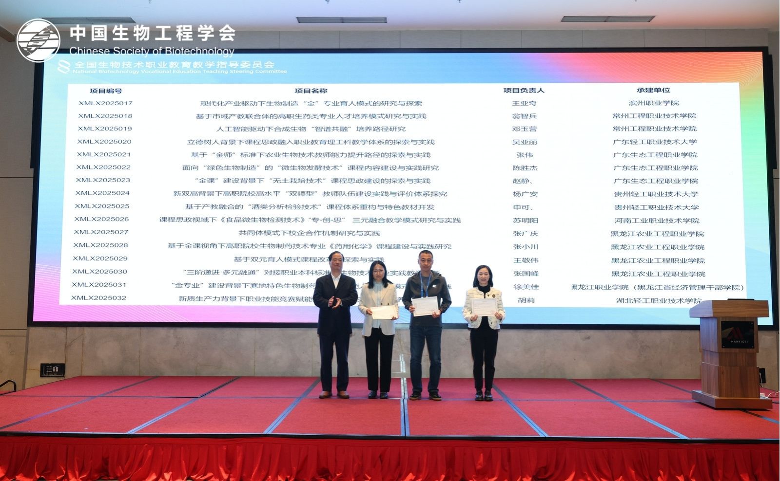 此次年会,生物制药学院硕果累累,收获颇丰。2024年度教改项目如期结项4个,2025年度教改项目成功立项4个。这些项目聚焦于“五金”建设、典型生产实践项目建设、“双师型”师资团队建设、“产教融合型”实训基地建设等核心要素,并进行了富有成效的探索与实践,有力推动了生物制药技术专业专业群高质量建设。
