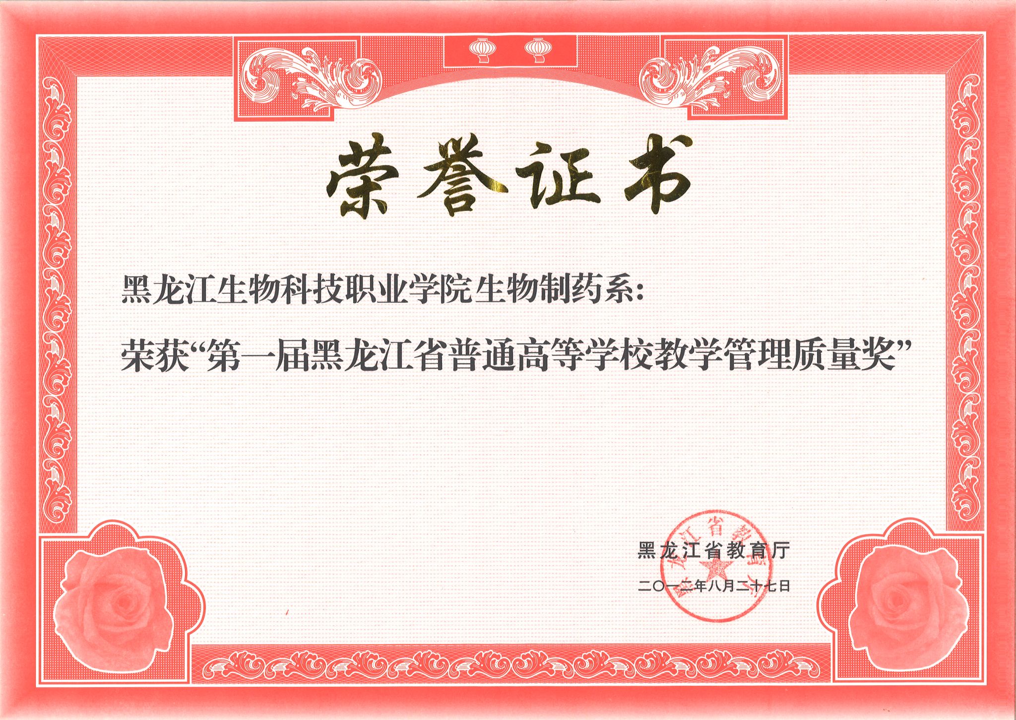 2012年第一届黑龙江省普通高等学校教学管理质量奖