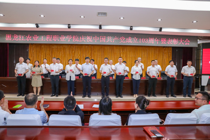 7月1日下午,我院庆祝中国共产党成立103周年暨表彰大会在松北校区图书馆大报告厅举行。学院新一届党委班子成员出席大会。全体党员参加大会。大会由学院党委副书记、工会主席赵云鹏主持。