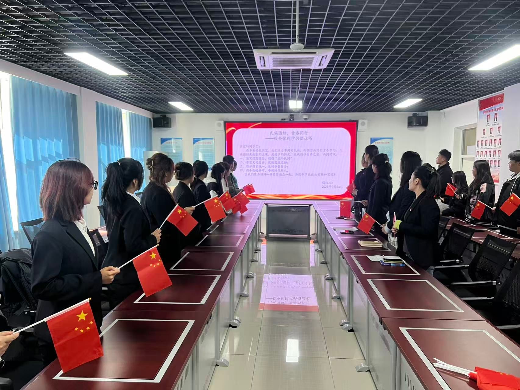 随后,全体参会师生肃立,一同高声宣读了《民族团结倡议书》,掷地有声的誓言在会场中回响,彰显了大家维护团结、反对分裂的坚定决心。紧接着,师生们庄重地在《民族团结承诺卡》上签署下自己的姓名,每一笔每一划,承载着厚重的承诺;每一张纸每一张卡,皆是心与心相连的见证。