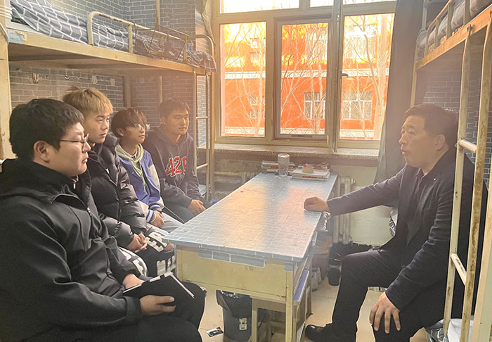 人文艺术学院党总支书记田松对开展好“三进两联一交友”活动提出三点要求:一是要切实做到帮思想、帮学习、帮生活;二是要做好学生成长成才的引路人和心理疏导的知心人;三是要做到“六心”,即对待学生要细心、思想教育要耐心、心理疏导要贴心、成才引导要热心、平时相处要交心、帮困解难要有爱心。