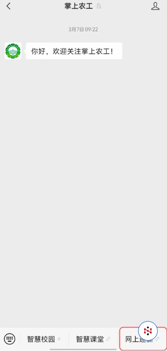 1.可通过微信搜索“掌上农工”,进入后点击右下角“网上迎新”即可进入迎新平台(如下图);