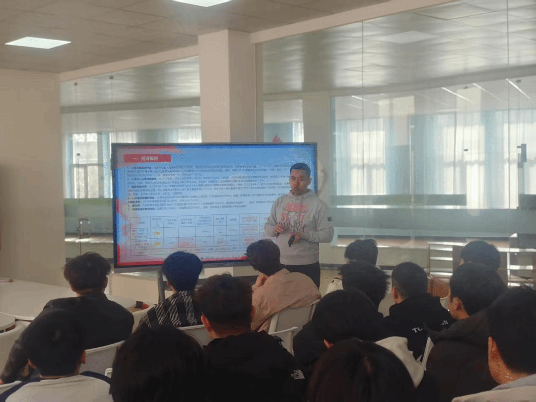 宣讲会上,学院武装部韩老师详细解读了2025年大学生征兵政策,包括报名条件、入伍流程、优待政策、发展前景等方面,并结合实际案例,生动形象地讲解了参军入伍对个人成长成才的积极影响。为帮助学子们更好地了解军营生活,消除后顾之忧,本次宣讲会特别设置了答疑环节,韩老师结合自身服役经历与同学们交流部队训练强度、军兵种介绍、专业发展方向、退役安置政策等,耐心解答了大家关心的热点问题。