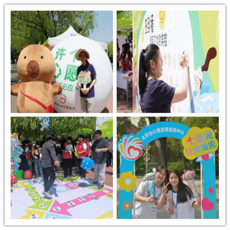 为深入贯彻 2025 年全国和全省教育工作会议精神,进一步落实《全面加强和改进新时代学生心理健康工作专项行动计划(2023—2025年)》,根据《万象城allwincity官网第十六届“5·25大学生心理健康教育活动月”实施方案》安排,万象城大学生心理发展指导中心协同各二级心理辅导站,在松北、南岗两个校区分别开展了以“五育润心 幸福启航”为主题的幸福游园活动。学校领导亲临现场,与学生共参与,助力心理健康教育。