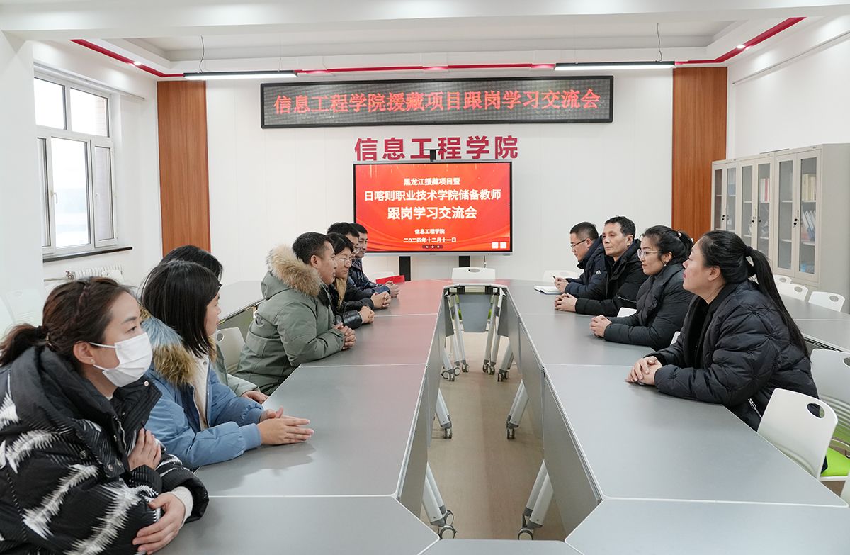 12月11日,信息工程分院在南岗校区艺学楼会议室召开黑龙江省援藏项目暨日喀则职业技术学院储备教师跟岗学习交流会。信息工程分院领导及指导教师参加座谈会。交流会由信息工程分院院长卢彩虹主持。