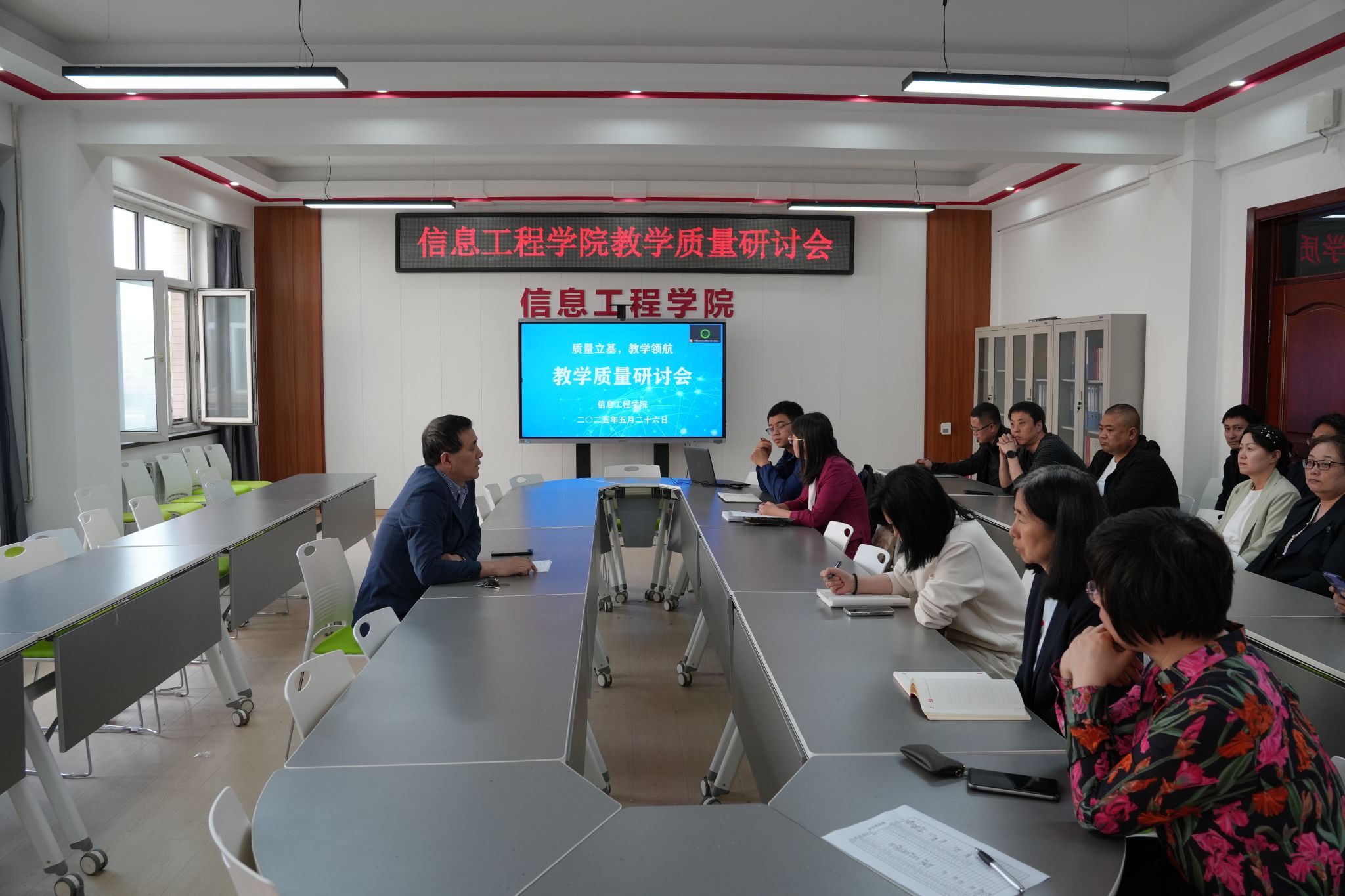 5月26日,信息工程学院在艺学楼3328会议室召开教学质量研讨会。本次会议由副院长黄宝坤主持,旨在深入探讨当前教学工作中存在的问题,进一步提升教学质量。学院各专业负责人、全体教师参加了此次会议。