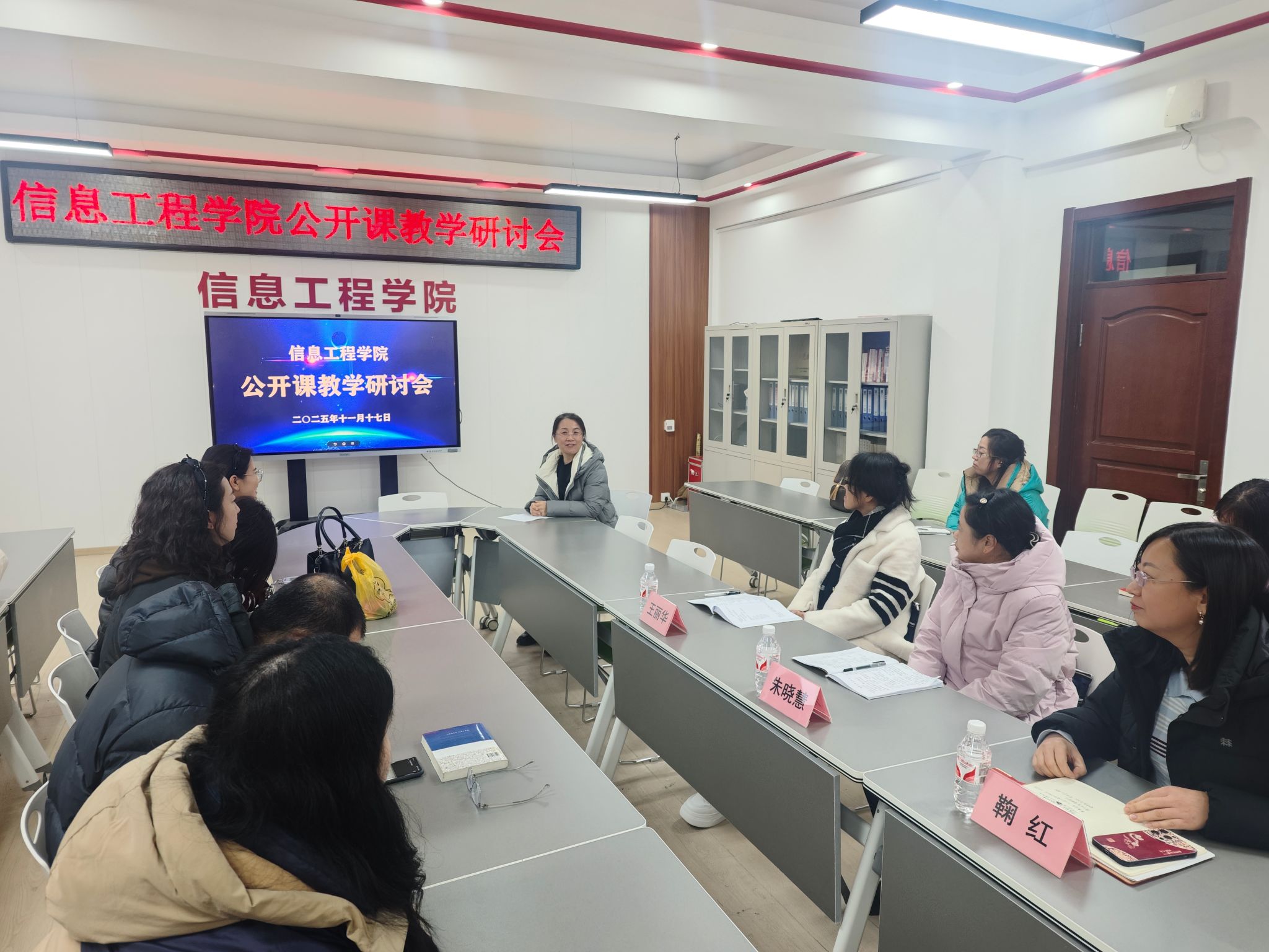 为深化教育教学改革,提升教师教学能力,促进教学经验交流,信息工程学院于艺学楼 223 教室举办秦秀媛老师《程序设计基础》公开课,课后在艺学楼3328会议室召开公开课教学研讨会。会议由大数据工程技术专业带头人鞠红主持,校级督导朱晓慧、王丽华两位老师受邀出席并指导,分院全体教师参会。