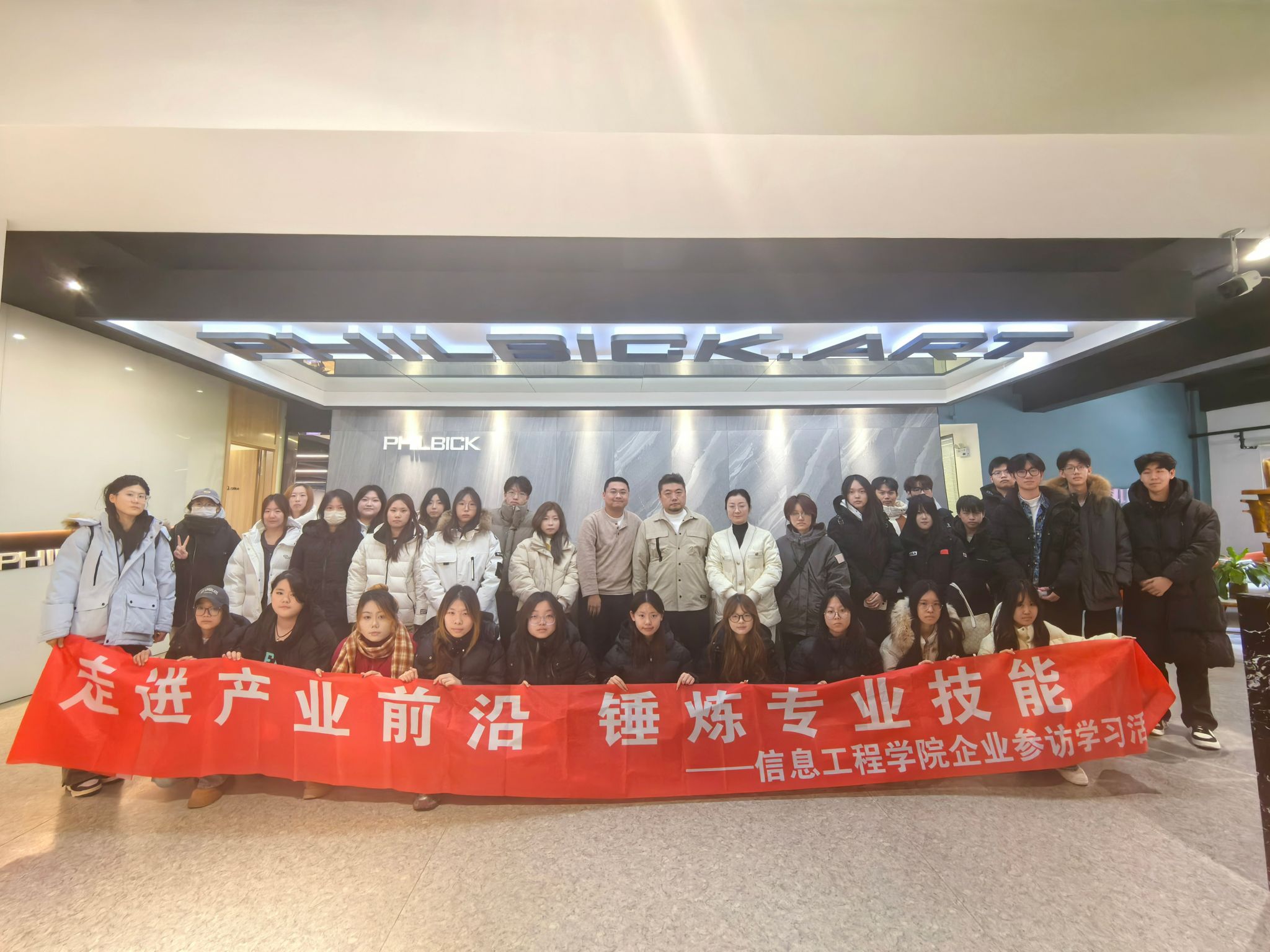 为帮助新生搭建“课堂学习”与“产业实践”的衔接桥梁,直观感受数字媒体行业前沿动态,12月4日、5日,信息工程学院数字媒体专业带头人崔辉、骨干教师毕秀梅,带领数字媒体技术专业24级1班、2班全体学生,前往黑龙江新媒体产业园中的哈尔滨菲尔比克科技公司,开展参观访学活动,以企业实景教学助力学生明确职业方向、夯实专业认知。