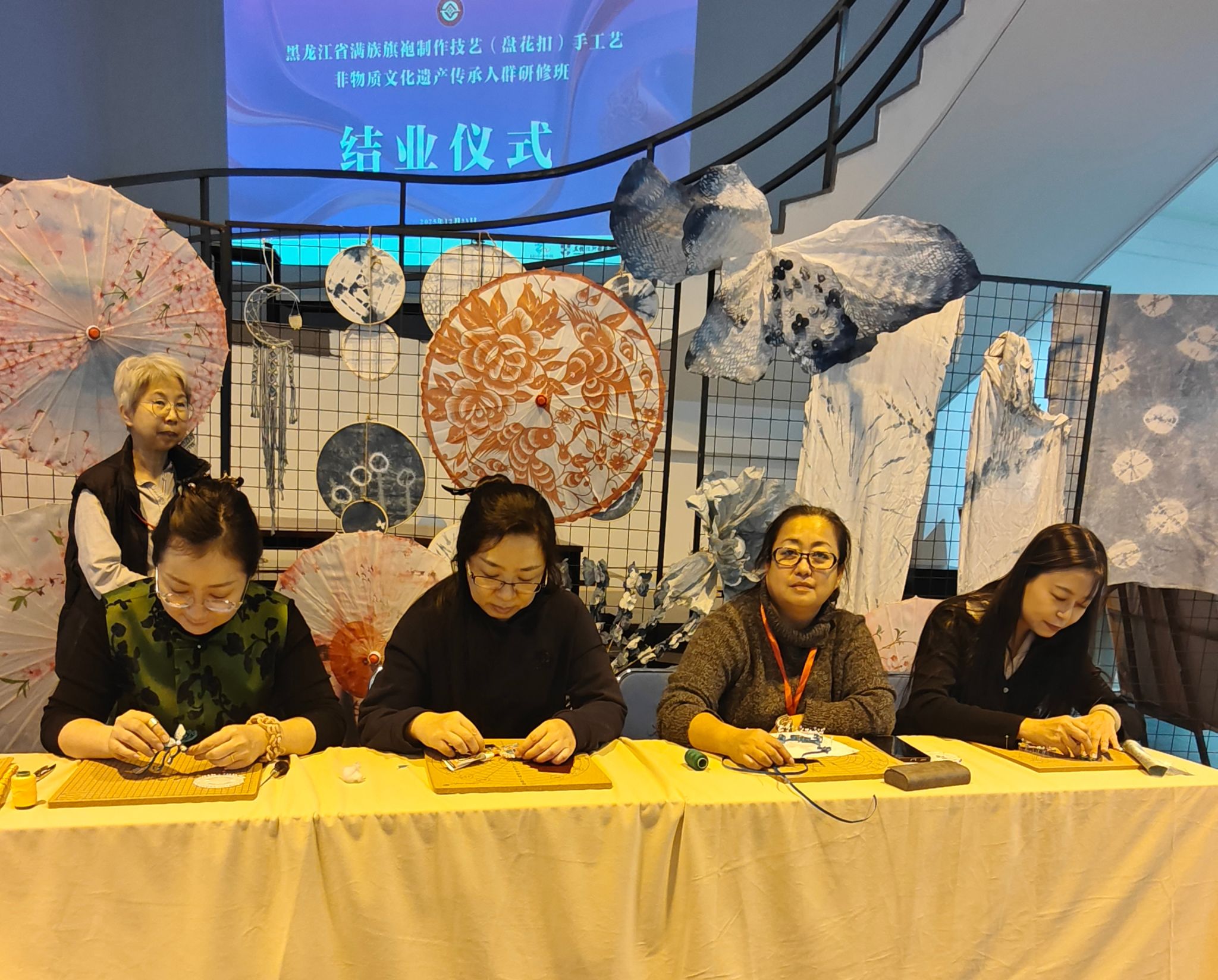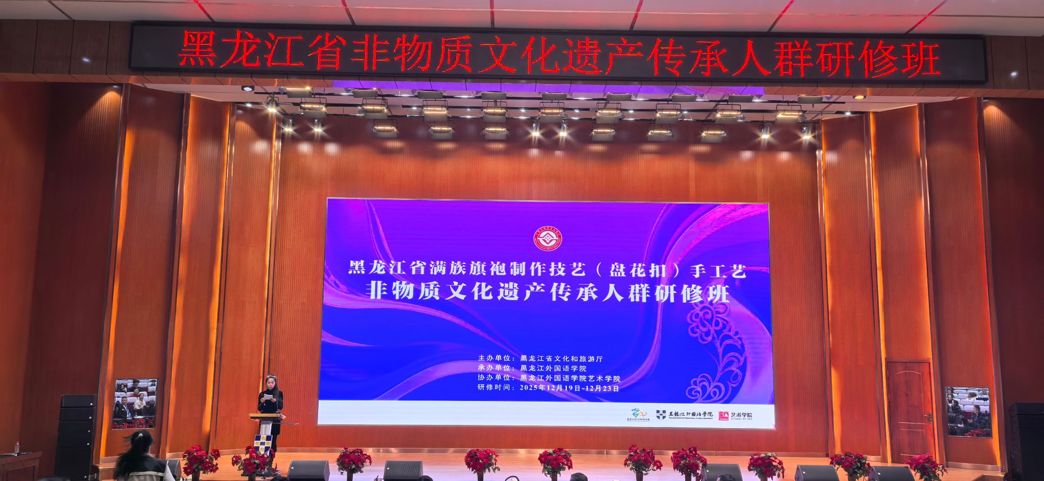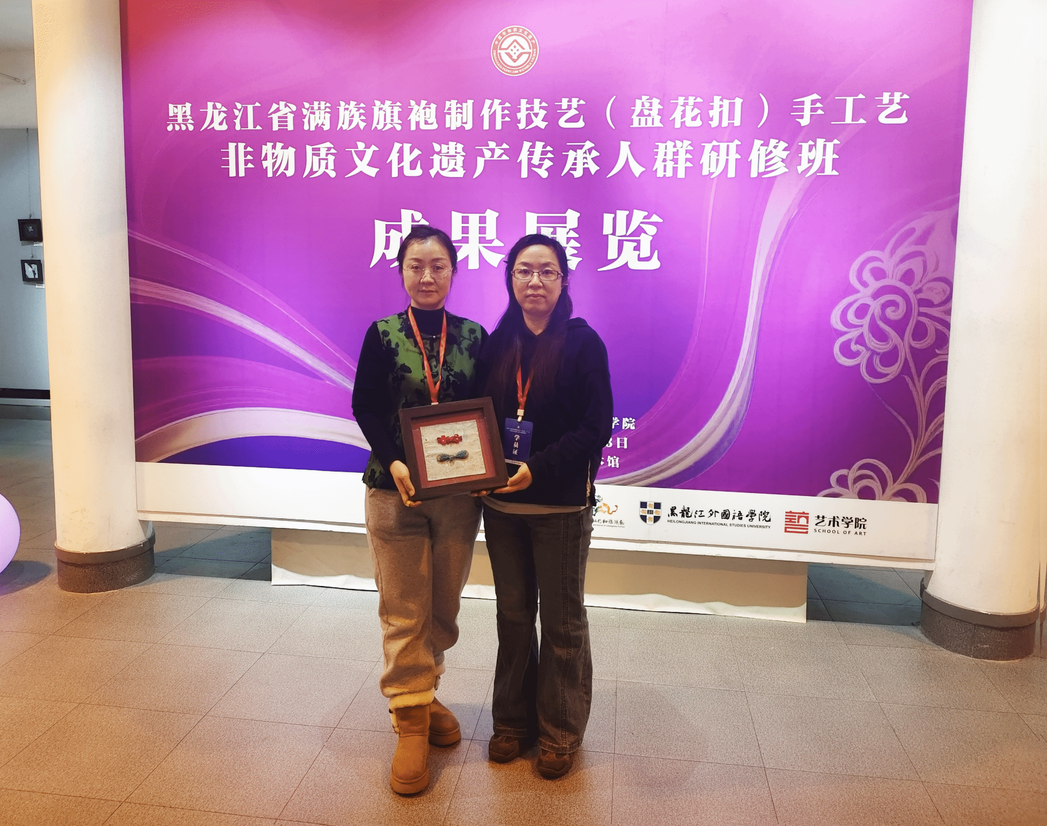 12月23日,为期 5 天的“省级非物质文化遗产——满族旗袍盘花扣制作技艺研修培训班”在黑龙江外国语学院圆满落幕。来自信息工程学院数字媒体技术专业的崔辉、陆阳两位教师顺利完成全部研修课程,并在结业式现场进行盘花扣技艺展示,以精湛手艺呈现学习成果,用创新表达诠释非遗传承新路径,为此次沉浸式研修画上圆满句号。
