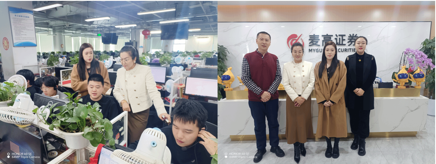在北京指南针科技发展股份有限公司,武经理热情接待了学院一行,全程陪同参观了麦高证券等企业分支机构,并结合企业运营实际,详细讲解了公司的业务范围、发展规划、核心竞争力及金融信息技术领域的人才需求方向。作为A股上市企业,指南针公司发展态势良好,市场表现突出,在信息服务领域有着显著优势。参观结束后,双方围绕金融信息技术领域的人才培养标准、岗位能力要求、实习就业对接等方面展开深入交流,企业对学院精准培养符合行业需求的技能型人才表示高度期待,双方就建立长期就业合作机制、开展定向人才输送、共建实践教学基地等事宜交换了意见,达成初步共识。