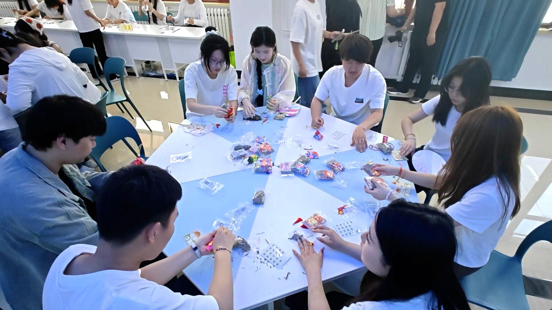 制作香囊和DIY漆扇区域则充满了创意与艺术气息。制作香囊时,同学们挑选自己喜爱的香料,将其小心翼翼地装入精美的香囊袋中,再用丝线封口,一个个小巧玲珑、香气四溢的香囊便诞生了。而DIY漆扇环节,大家充分发挥想象力,用五彩颜料在扇面上描绘出各种图案,原本空白的漆扇在同学们的手中变得色彩斑斓、独具个性。