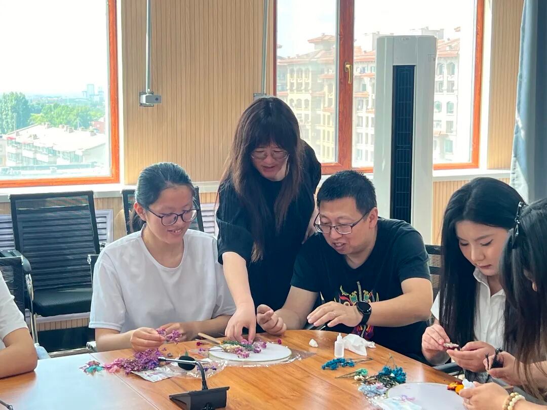 行走结束后,同学们来到活动场地,开始干花扇制作环节。工作人员为同学们准备了精美的干花、空白扇子以及各类制作工具。同学们充分发挥自己的创意,将色彩斑斓的干花精心排列组合,粘贴在扇子上,制作出独一无二的干花扇子。有的同学以淡雅的小雏菊为主花,搭配上几片嫩绿的叶子,营造出清新自然的氛围;有的同学则选择了色彩鲜艳的玫瑰干花,制作出华丽的扇面。大家一边制作,一边交流心得,感受夏日的风拂过扇面时带起花的微香。