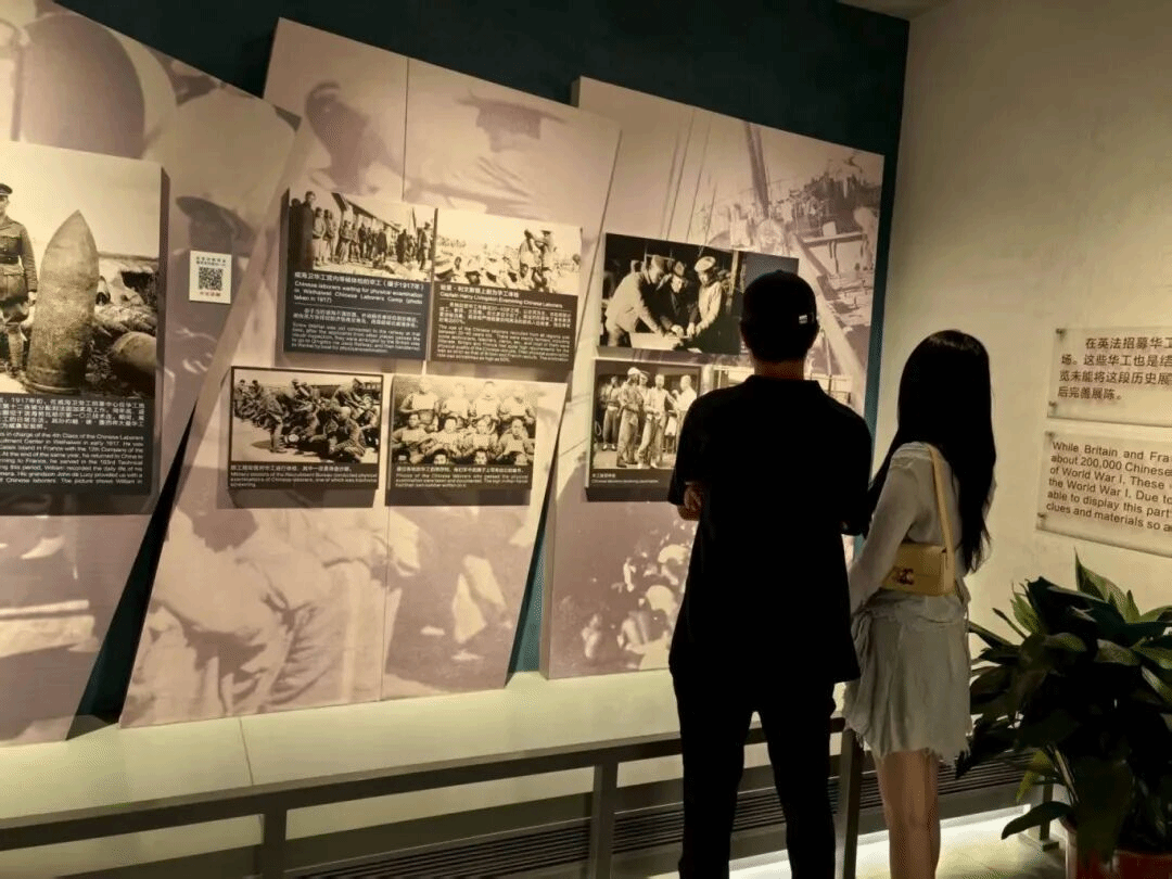一战华工纪念馆位于山东省威海市,是为了纪念中国在第一次世界大战期间向欧洲战场派出的14万劳工而设立的纪念馆。它作为全国首个一战华工专题纪念馆,以沙盘、模型还原了一战华工当时的部分工作场景,在推动爱国主义教育和革命传统教育、推进国际交流等方面具有独特优势。展览中展示的实物和照片,让团队成员真切感受到了华工们的坚韧不拔和牺牲精神。华工们身处逆境,却勇敢地挺身而出,为人类的和平与发展做出了巨大贡献。我们应当珍惜和平,接续奋斗,传承红色基因,为建设社会主义现代化强国、推动构建人类命运共同体贡献自己的力量。