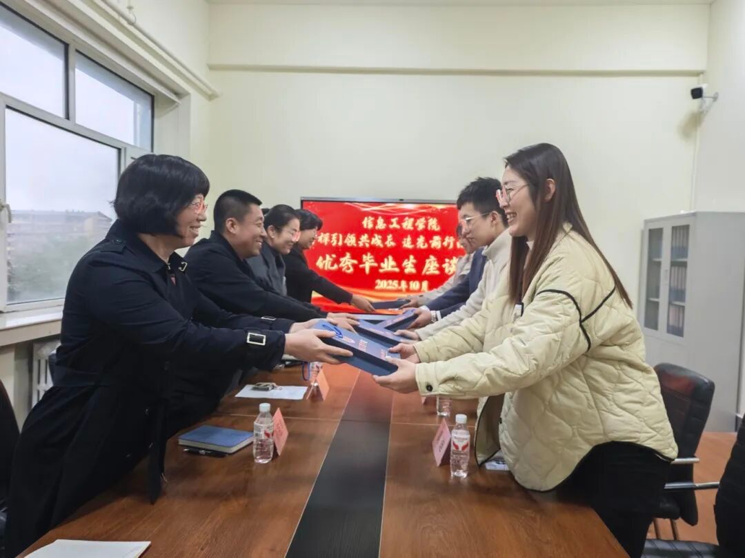 分享会结束后,学院还组织召开了4名优秀毕业生座谈会。会上,党政班子成员与毕业生深入交流,倾听他们对学院人才培养、专业建设的意见建议。为感谢毕业生对学院发展的支持与反哺,学院领导向4名优秀毕业生赠送了精心准备的纪念品,希望他们在未来的职业道路上继续发光发热,常回“家”看看。