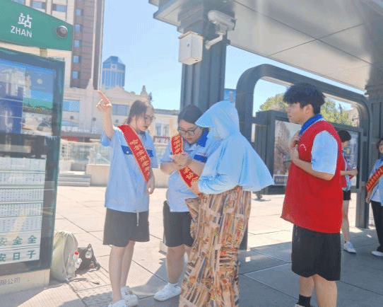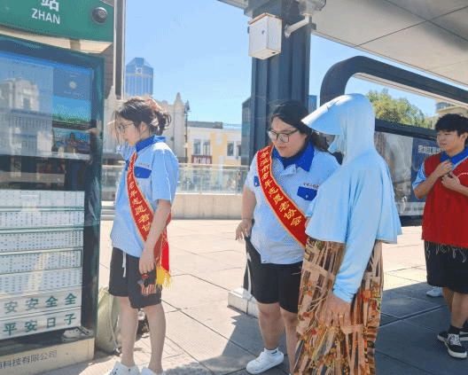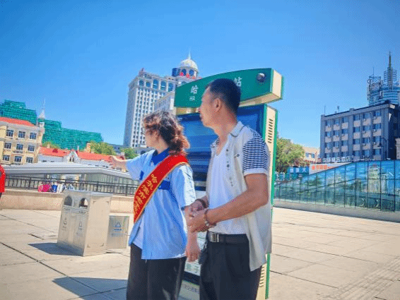 在接受红色精神洗礼后,实践团成员迅速将感悟转化为行动,主动加入哈尔滨火车站附近志愿服务队,投身引导旅客、解答咨询、协助搬运行李等志愿服务工作。炎炎夏日里,同学们的身影穿梭在车站大厅,耐心为迷茫的旅客指引方向,细心帮助老人操作自助购票机,用真诚的微笑和热情的服务,为出行的人们送上一份温暖。这不仅是对党的二十大报告中“坚持以人民为中心的发展思想”的生动实践,更是青年学子用实际行动践行社会主义核心价值观的体现。