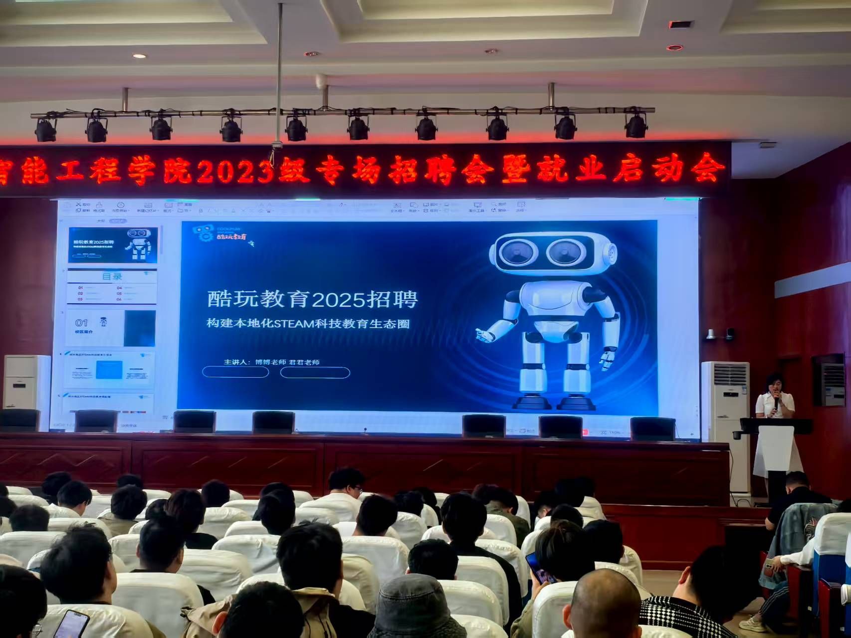 为拓宽我院2023级学生就业渠道,助力学院实现高质量就业,智能工程学院于2025年5月21日在艺学楼报告厅召开2023级学生省外专场招聘会。