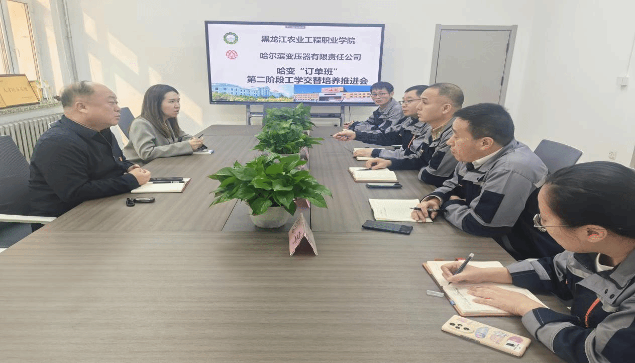 4月10日,智能工程学院与哈尔滨变压器有限责任公司成功举办哈变“订单班”第二阶段工学交替培养推进会,会议在砺学楼二楼会议室召开。学院院长王洪兴、教学副院长王双印、学生工作负责人谭利都、电气工程及自动化专业群带头人贾鸿莉及相关工作人员,与哈尔滨变压器有限责任公司党委副书记张咏欣共同出席、部长司麒泽参加了本次会议。