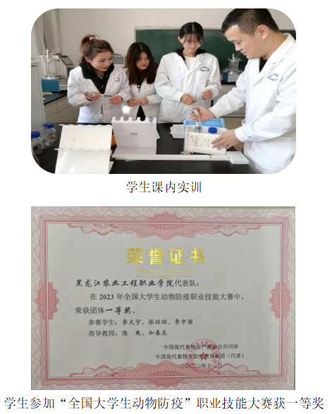 在畜禽养殖企业从事动物防疫员、动物检疫员、动物化验员等工作;在动物卫生监督部门从事动物卫生监督等工作;在畜禽产品生产经营场所从事畜禽产品检疫检验、生产、销售等工作。动物医学学院与黑龙江大北农农牧食品有限公司、哈尔滨大众肉联食品有限公司、黑龙江完达山哈尔滨乳品有限公司、黑龙江望奎双汇北大荒食品有限公司、山东益生种畜禽股份有限公司等多家全国知名企业签订了校企合作协议,为本专业学生实习、就业夯实了基础。