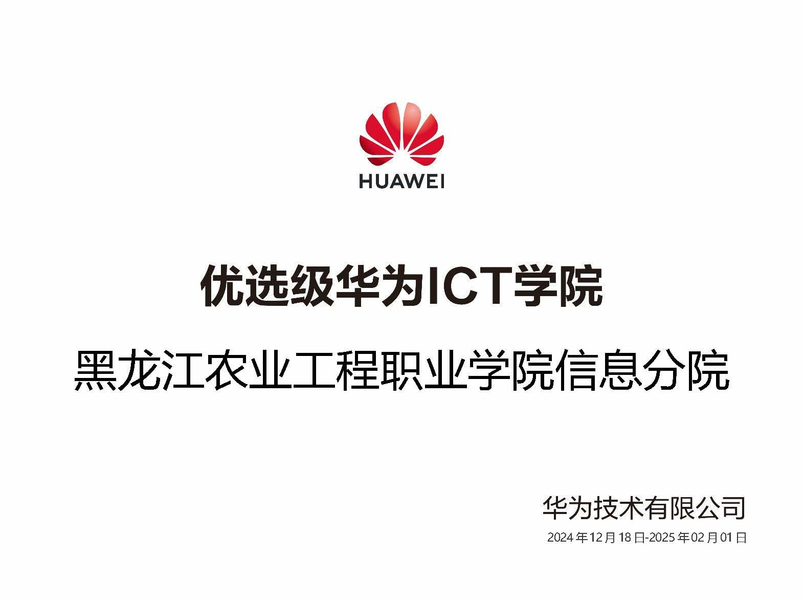 近日,我院信息工程分院华为ICT学院成功升级为“优选级华为ICT学院”。作为黑龙江省唯一获此殊荣的高职院校,这一荣誉标志着我院与华为技术有限公司在信息通信技术(ICT)人才培养领域的深度合作又迈出了坚实的一步,也体现了我院在ICT教育领域所取得的优秀成绩和雄厚实力。