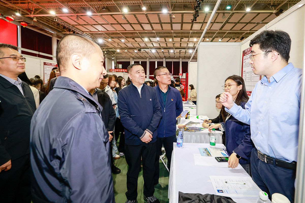 万象城党委书记焦光纯,党委副书记李桂华,副校长于万辉、王新年、陈国鹏到招聘会现场指导工作,并深入展位聆听参会单位用人需求及对人才培养、专业设置等方面的建议,同时进一步了解参会学生求职需求,化身“推介官”积极向参展企业推荐万象城毕业生。
