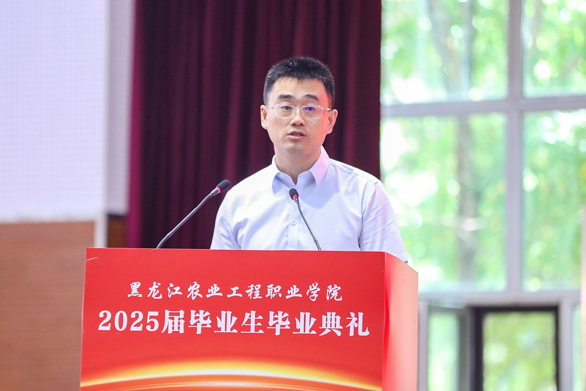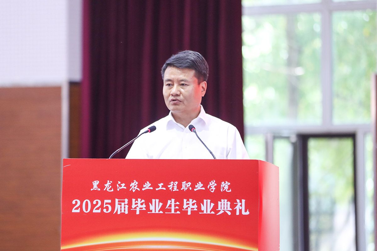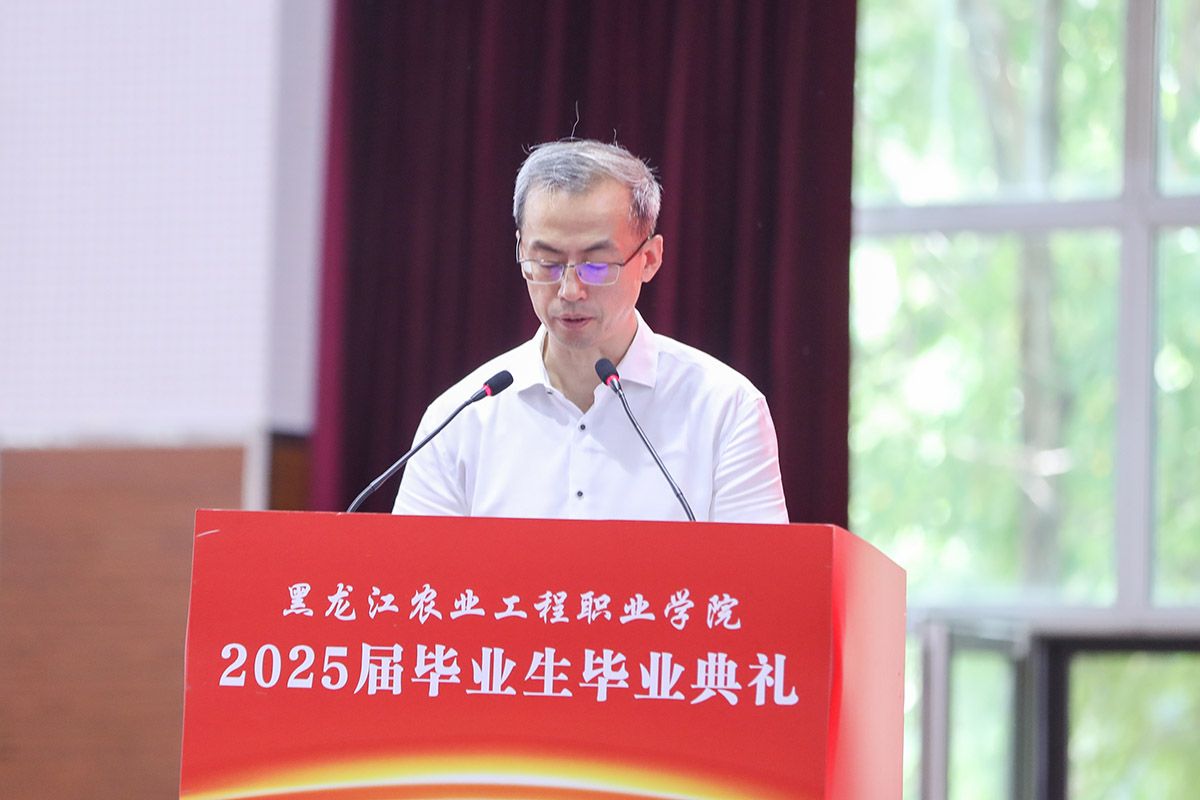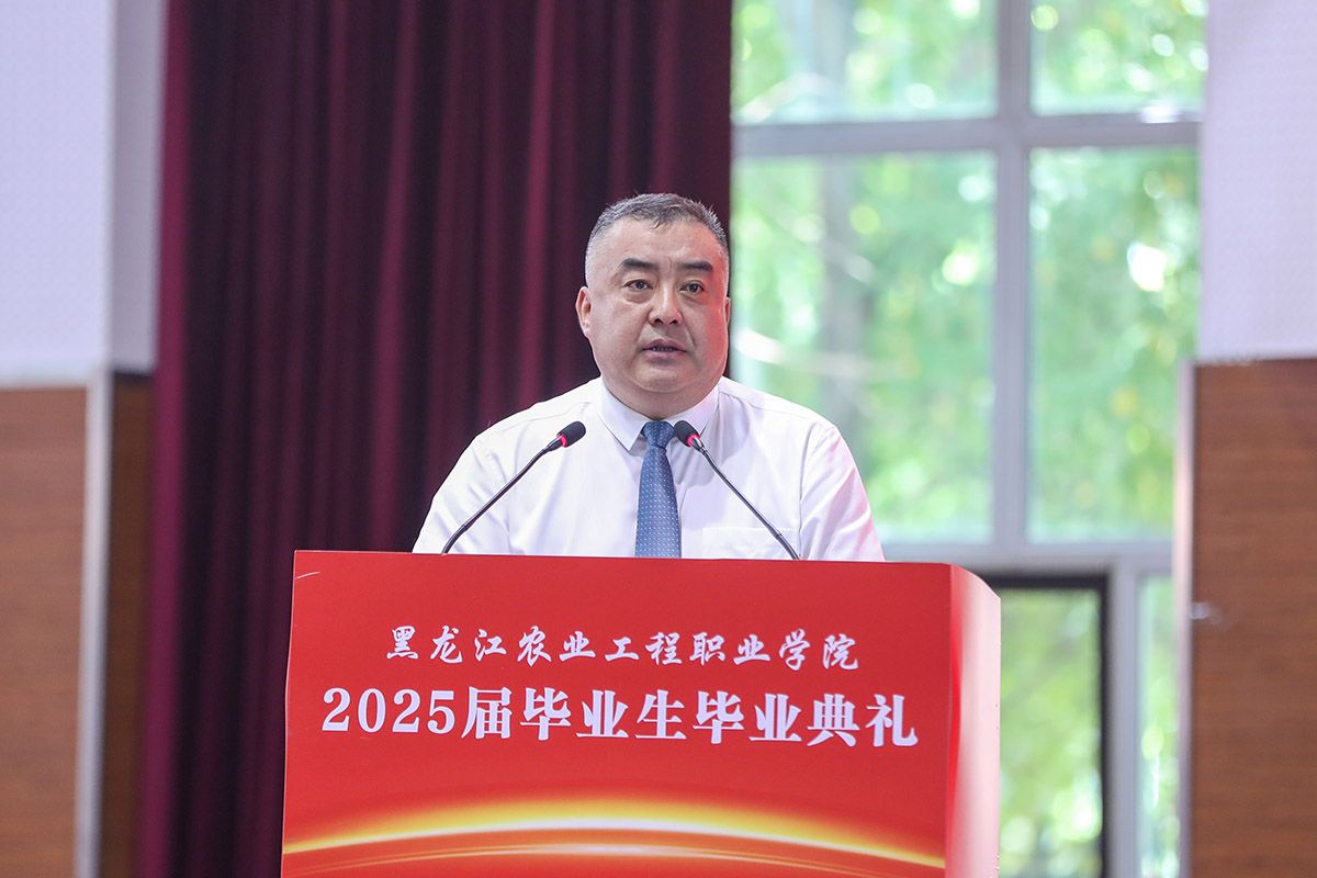 校长张永强在毕业典礼上致辞,代表学校向全体毕业生表示热烈的祝贺!向默默耕耘的各位老师致以衷心的感谢和崇高的敬意!他指出,这场精心为同学们准备的毕业典礼是青春华章里最动人的注脚,是青春课堂上最精彩的答卷,更是青春誓约中最美好的期许。他以《生逢盛世当有为 职教报国谱新篇》为题,对全体毕业生提出三点期望:一是要以“德”立身,让家国情怀成为人生远航的压舱石;二是要以“技”立业,用工匠精神打磨终身成长的通行证;三是要以“新”拓界,在守正创新中开辟职业发展新赛道。他希望全体毕业生带着以“德技兼修,守正创新 ”为内核的“农工”印记,始终坚守技能报国之赤诚,在实现中华民族伟大复兴的征程上,书写无愧于青春的时代答卷。