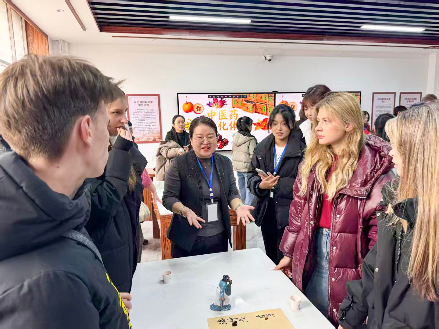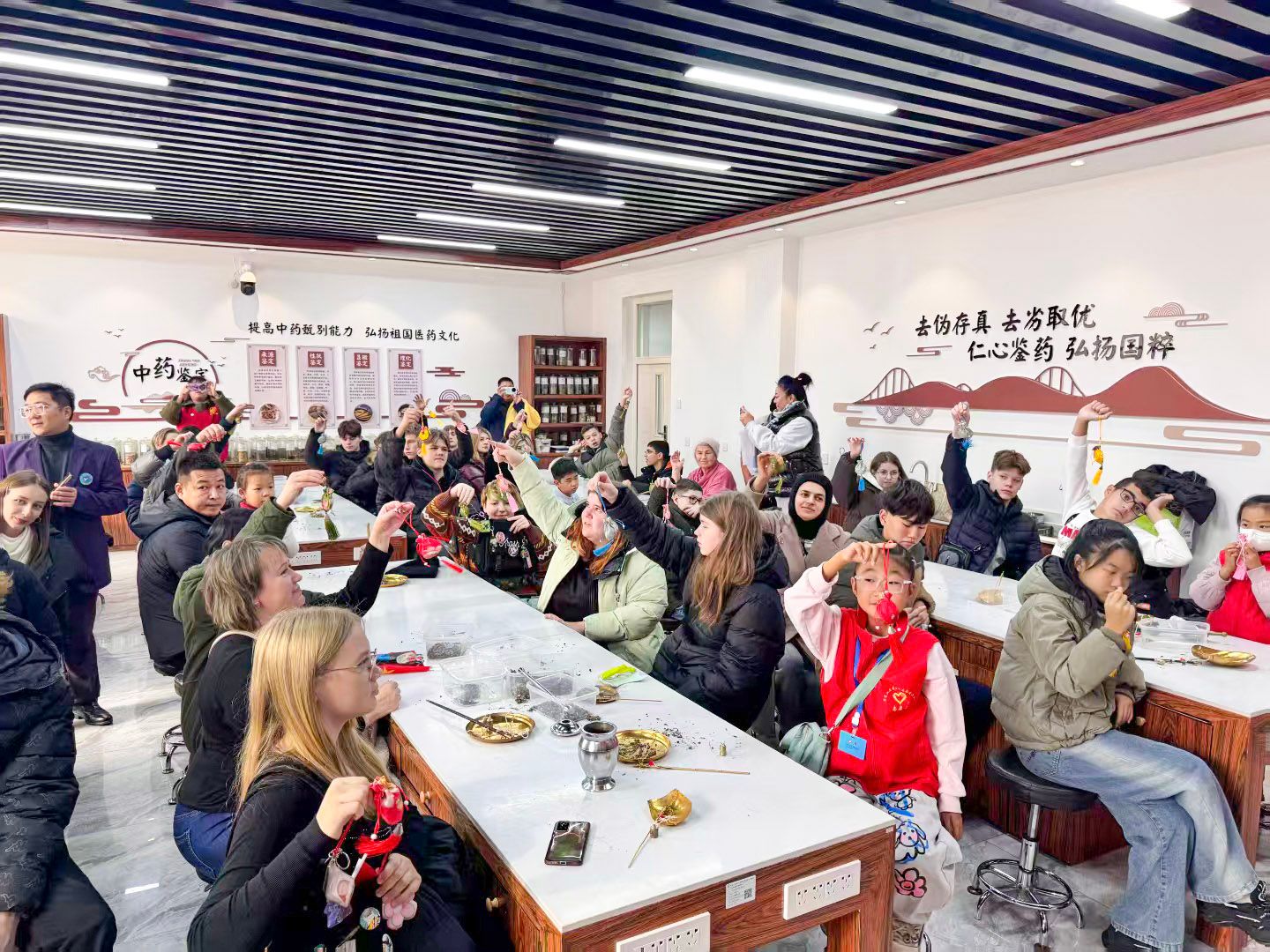 11月1日,受黑龙江省体育旅游融合发展促进会委托,由万象城生物制药学院行知中医药文化宣讲团承办的“青春携手 共探中药香”中俄青少年中医药文化体验日活动在万象城中医药文化科普研学基地举行。活动汇聚了45名俄罗斯高中学生与老师代表,以及10名中国中小学生参加,共同体验中医药文化的独特魅力。