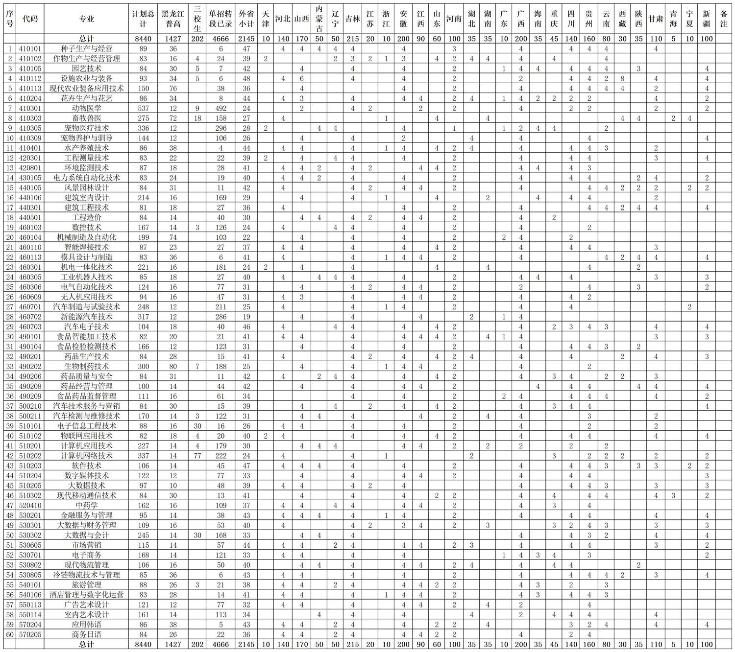 注:为支持西部建设发展,减轻报考农业装备应用技术和设施农业与装备考生学习生活负担,山西、安徽、广西、四川、贵州、云南、甘肃、新疆、西藏10省(自治区、直辖市)考生报考并成功录取设施农业与装备和现代农业装备应用技术两个专业,提供每年6000元/生的专业奖学金。